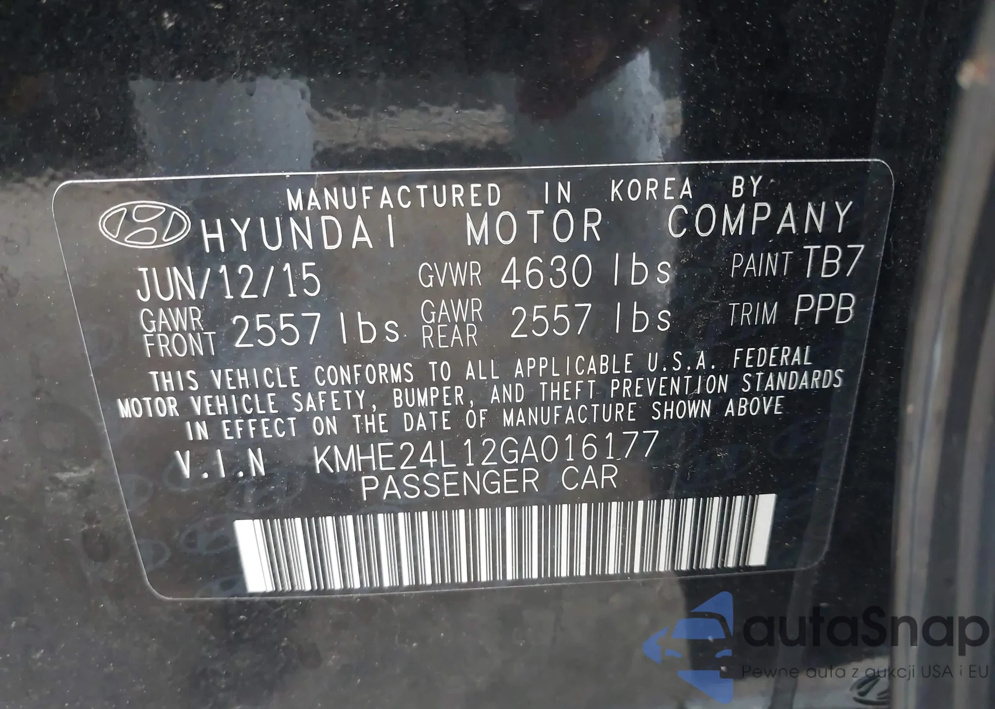 LOT: 42945436 VIN: 5FNYF6H57GB066481