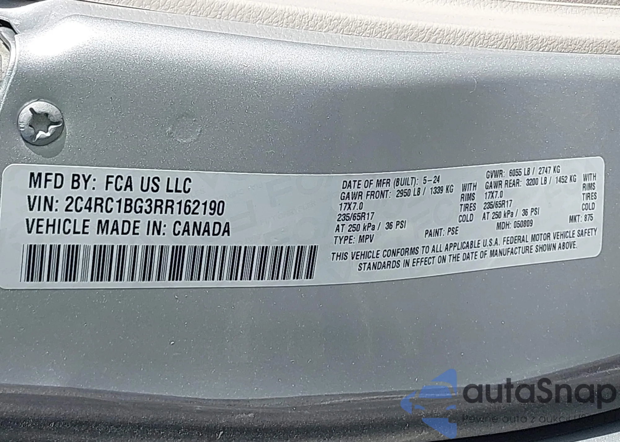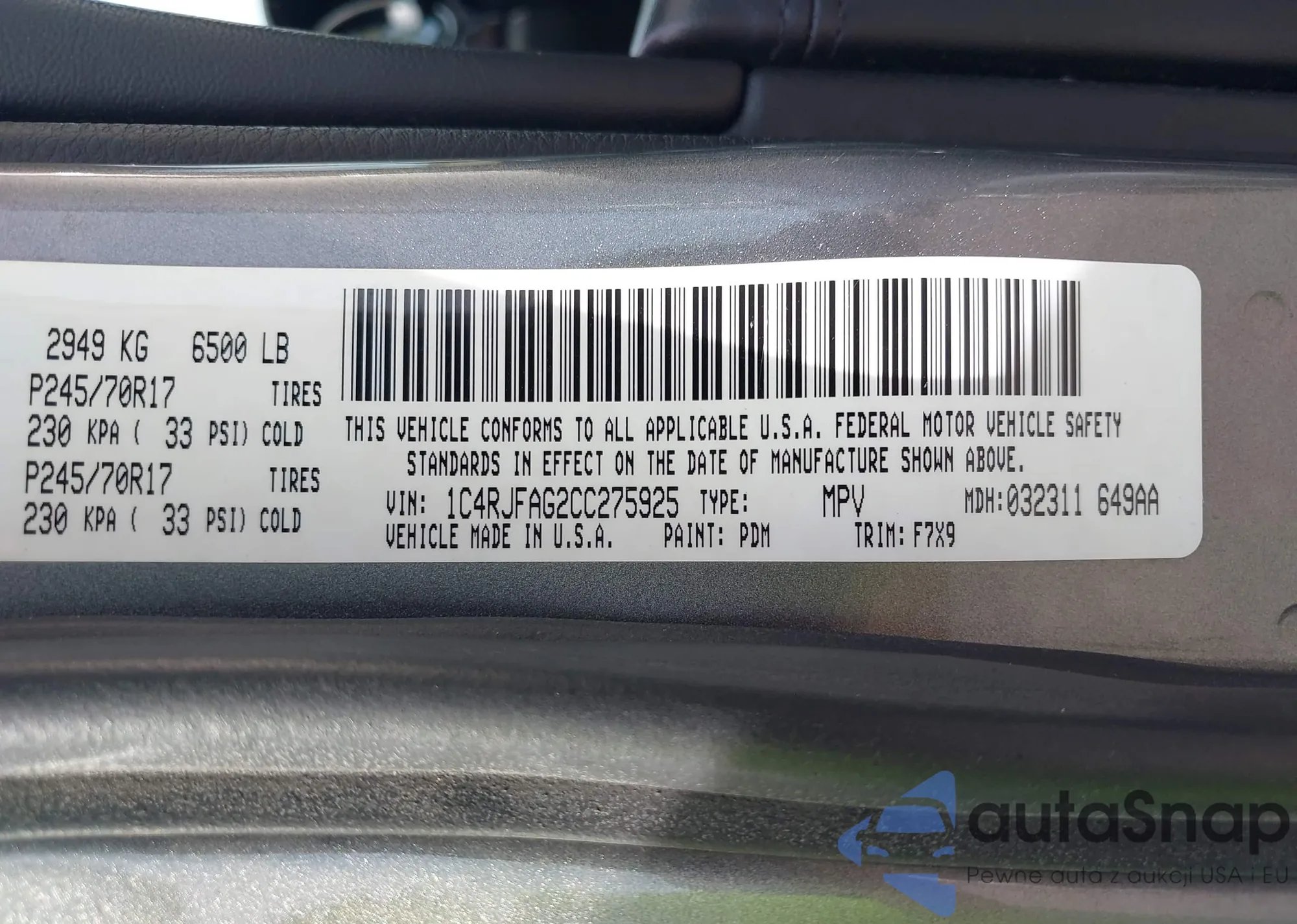 • VIN 1C4RJFAG2CC275925