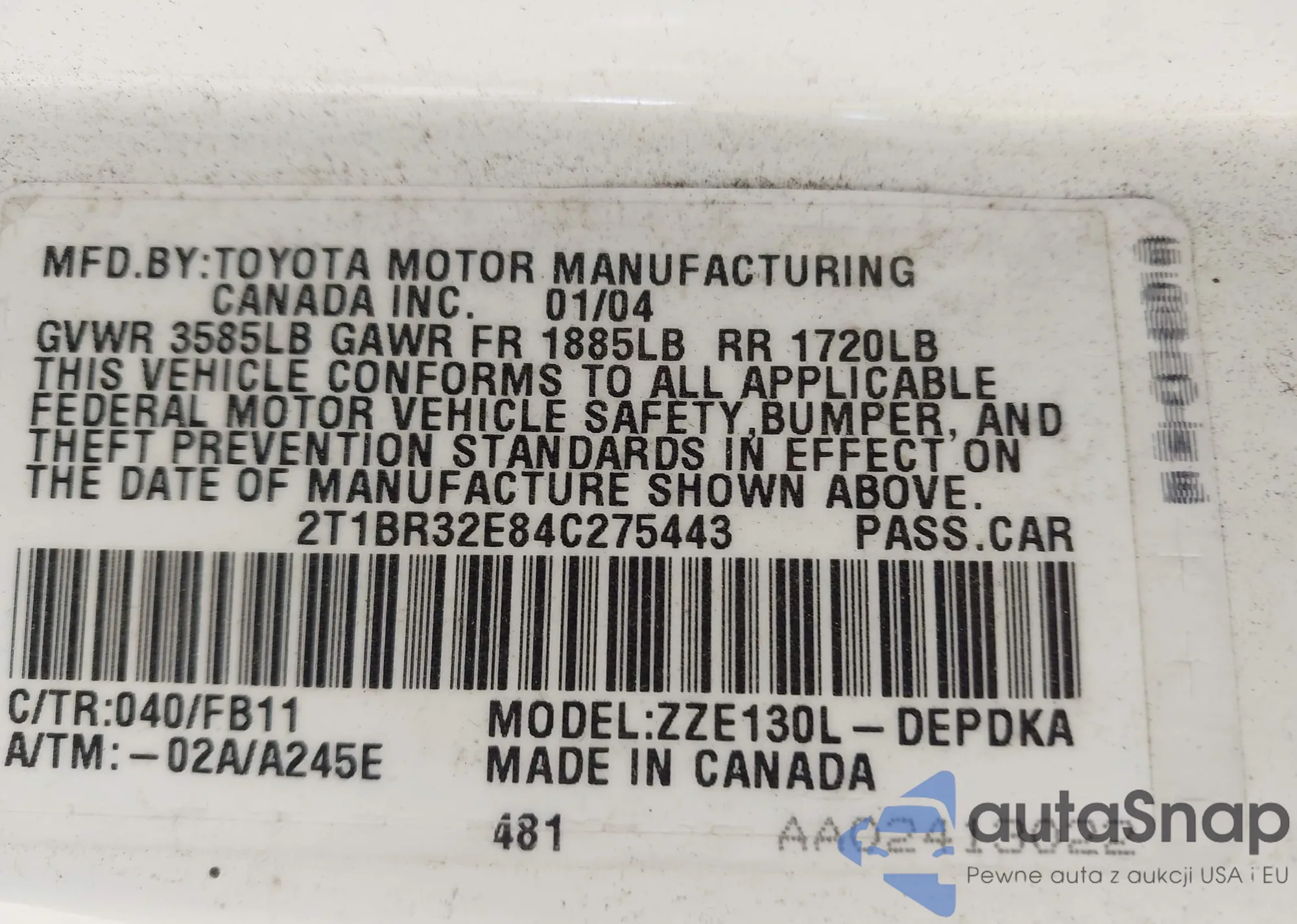 LOT: 42747380 VIN: JTDKB20U153051062