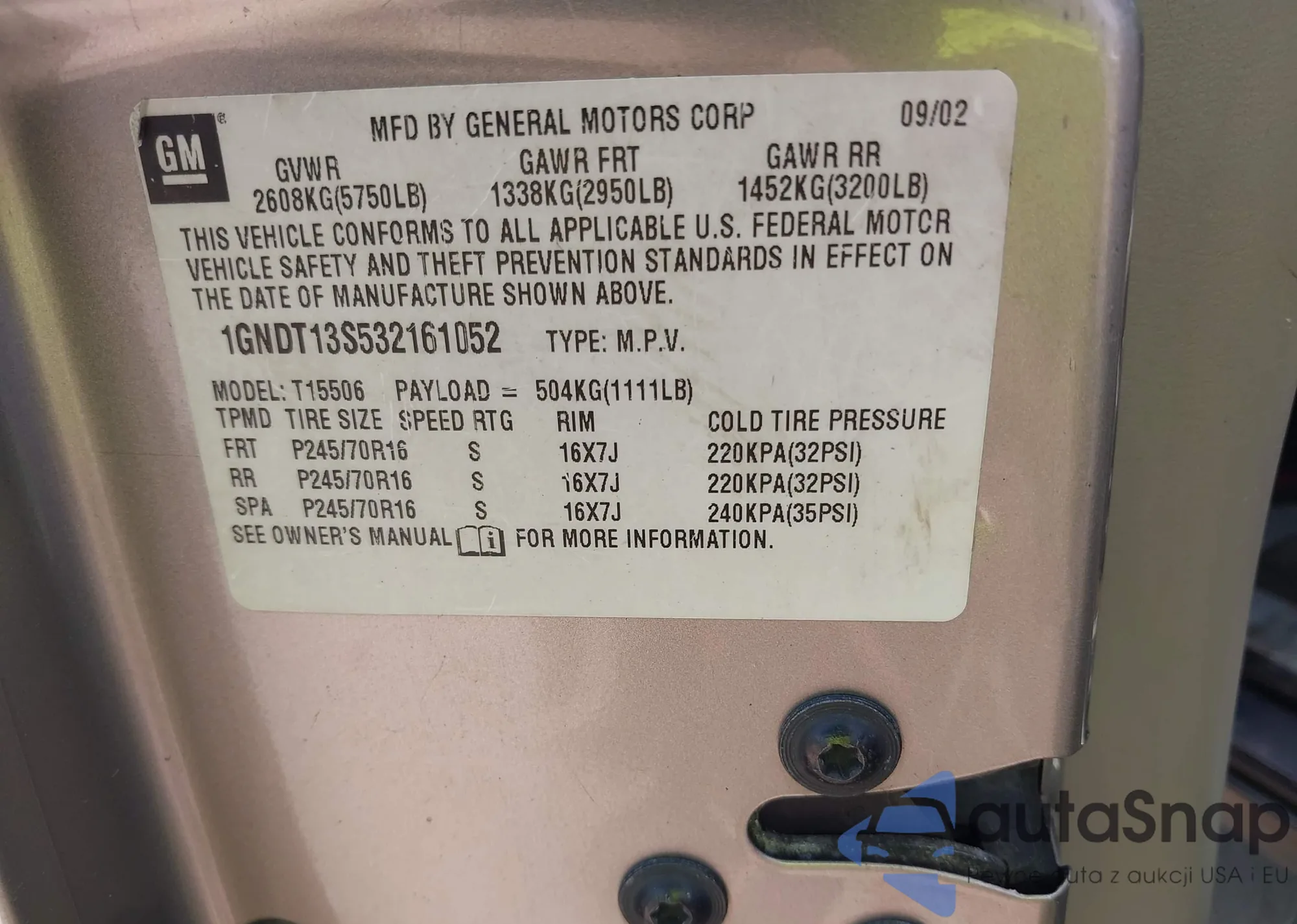 LOT: 42704679 VIN: 1GNDT13S532161052