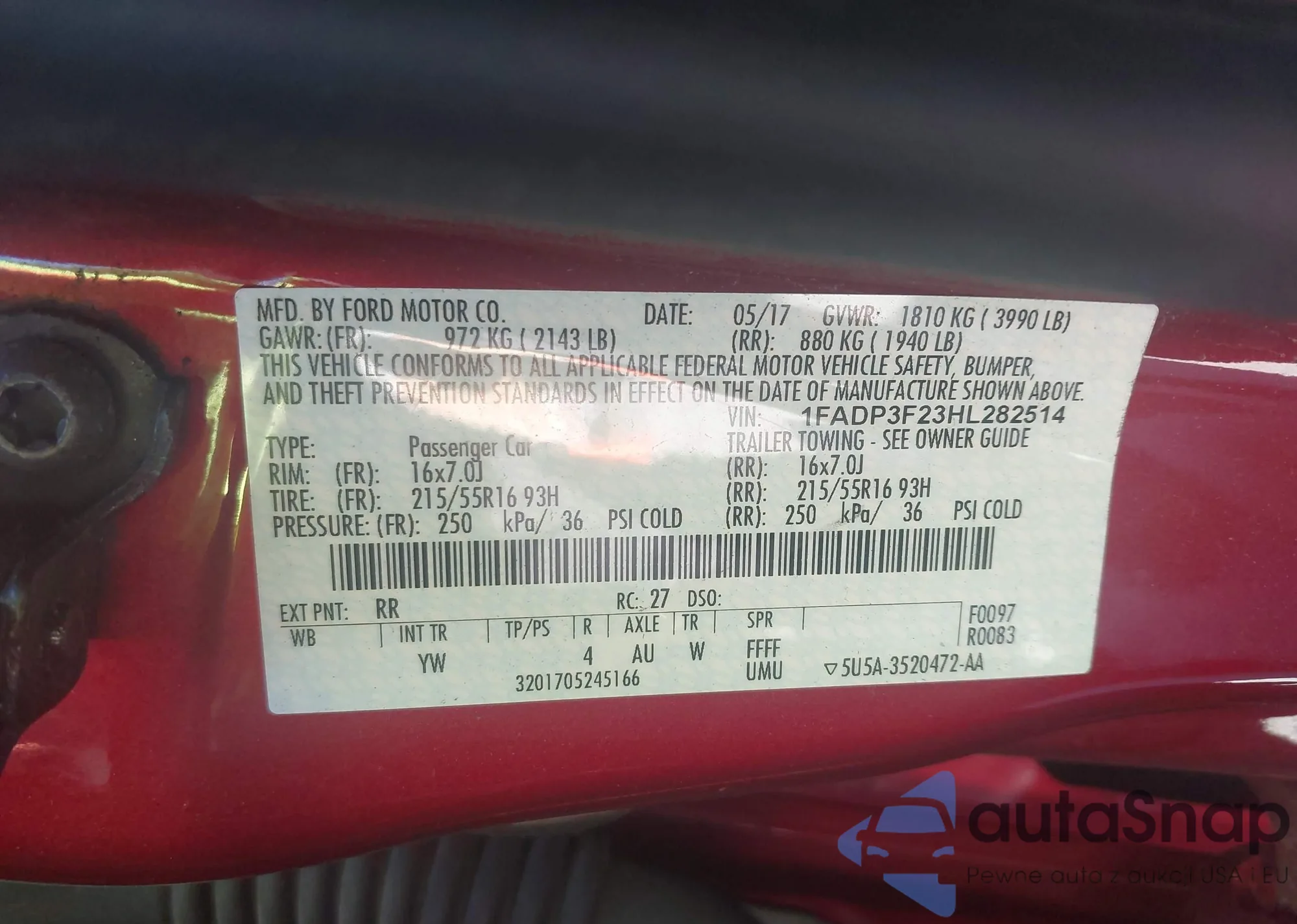 • VIN 1FADP3F23HL282514
