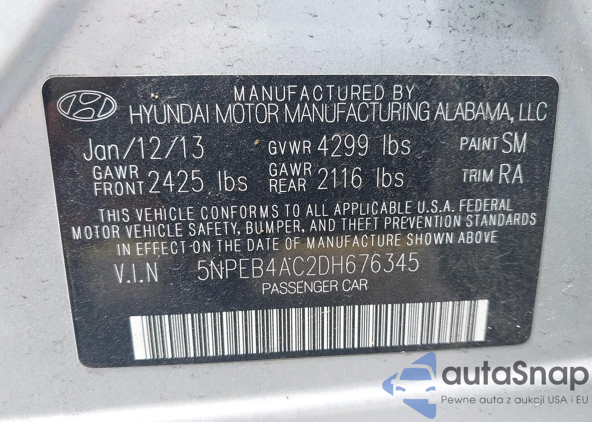 • VIN 5NPEB4AC2DH676345