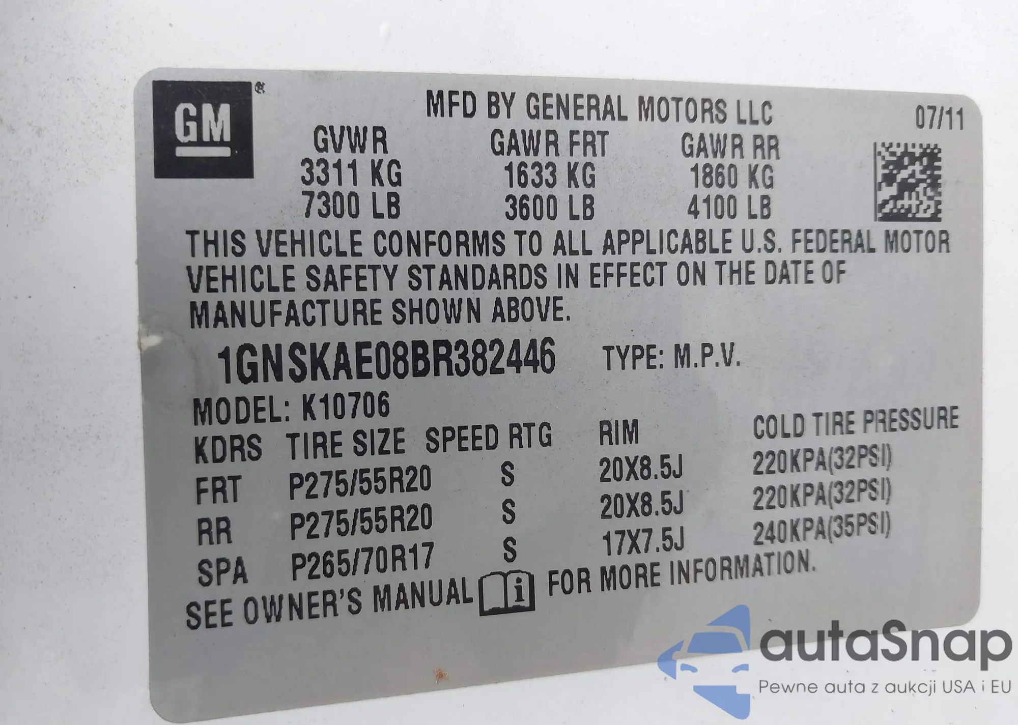 • VIN 1GNSKAE08BR382446