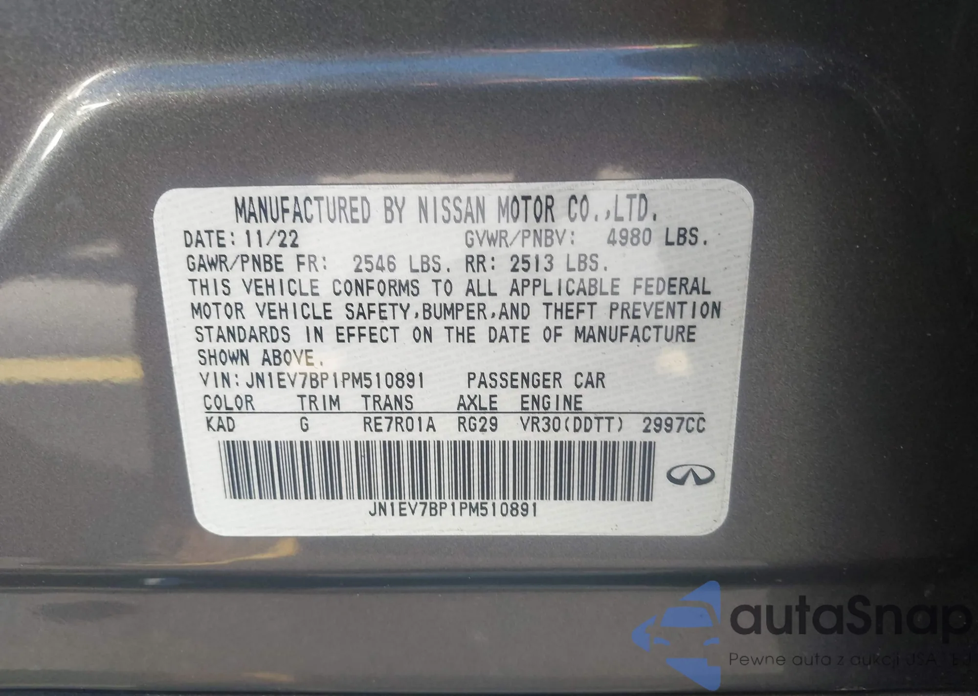 LOT: 42535050 VIN: JN1EV7BP1PM510891