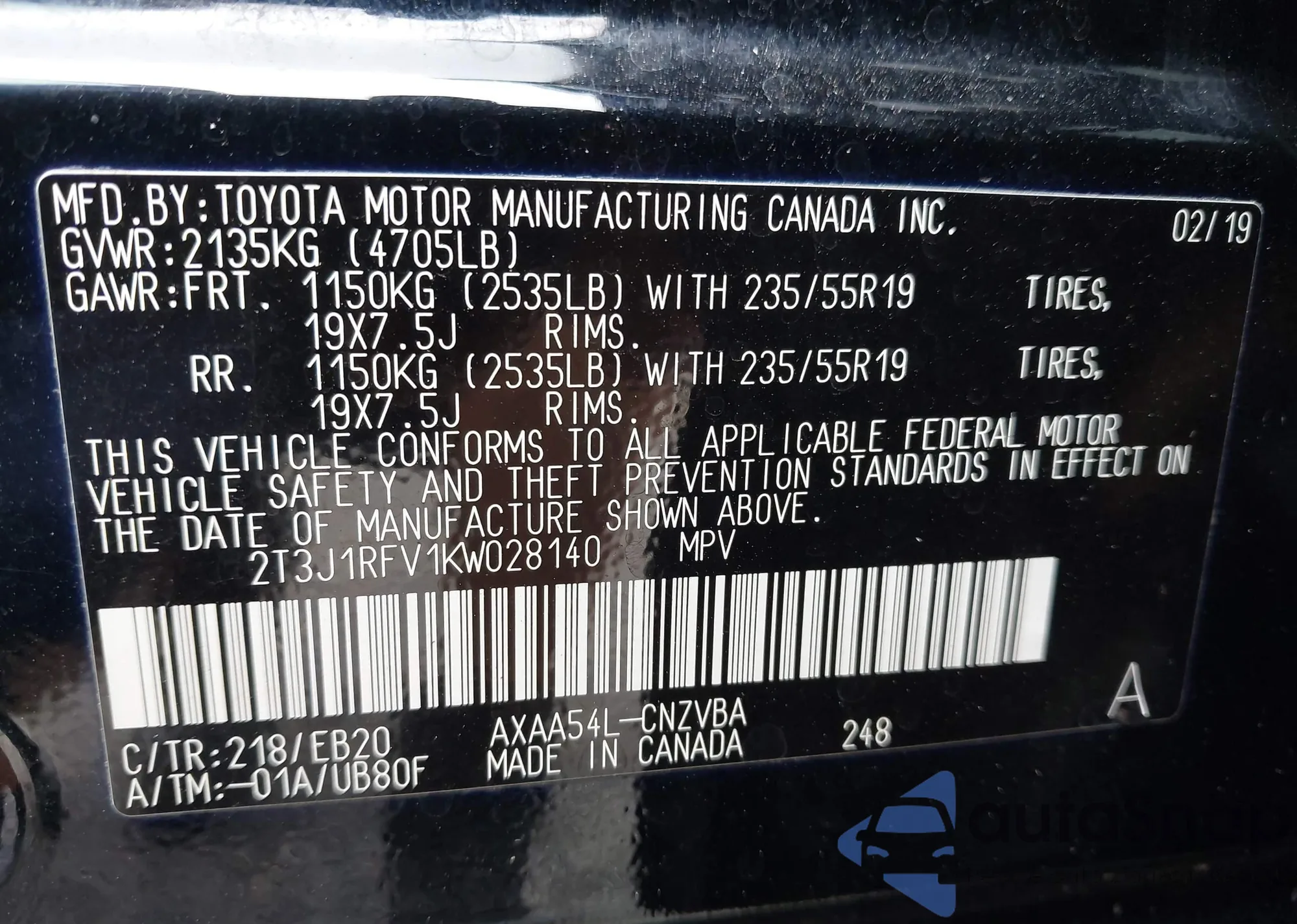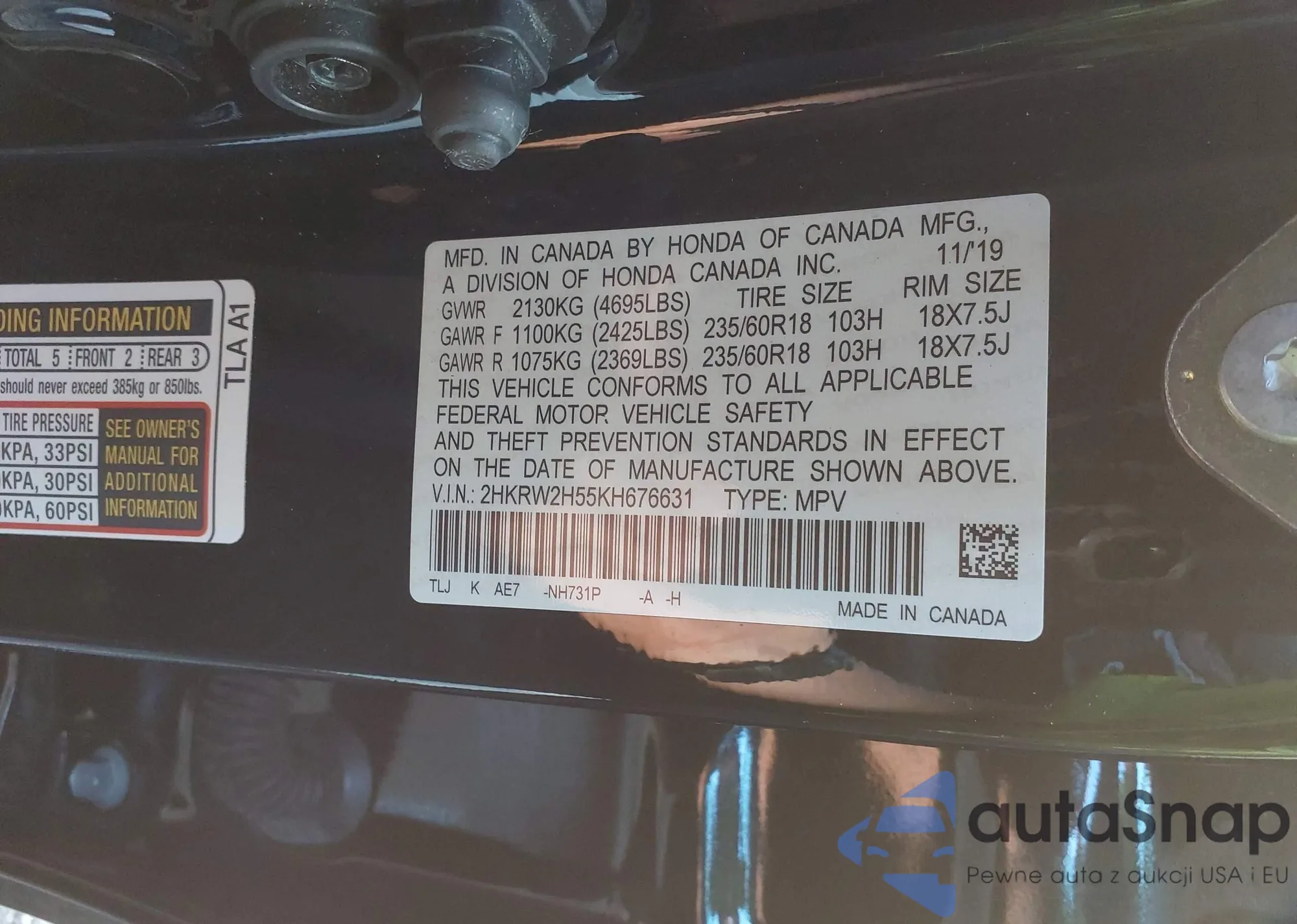 • VIN 2HKRW2H55KH676631