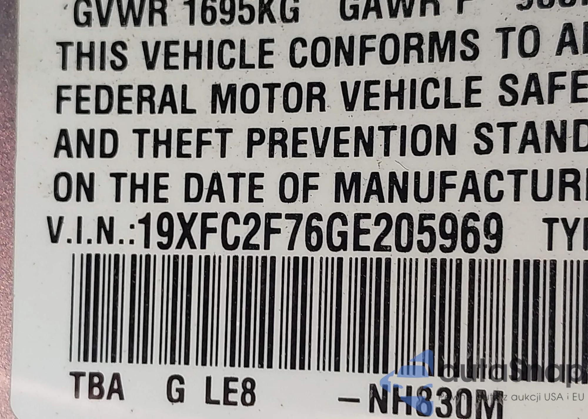 • VIN 2HKRW2H24LH663439