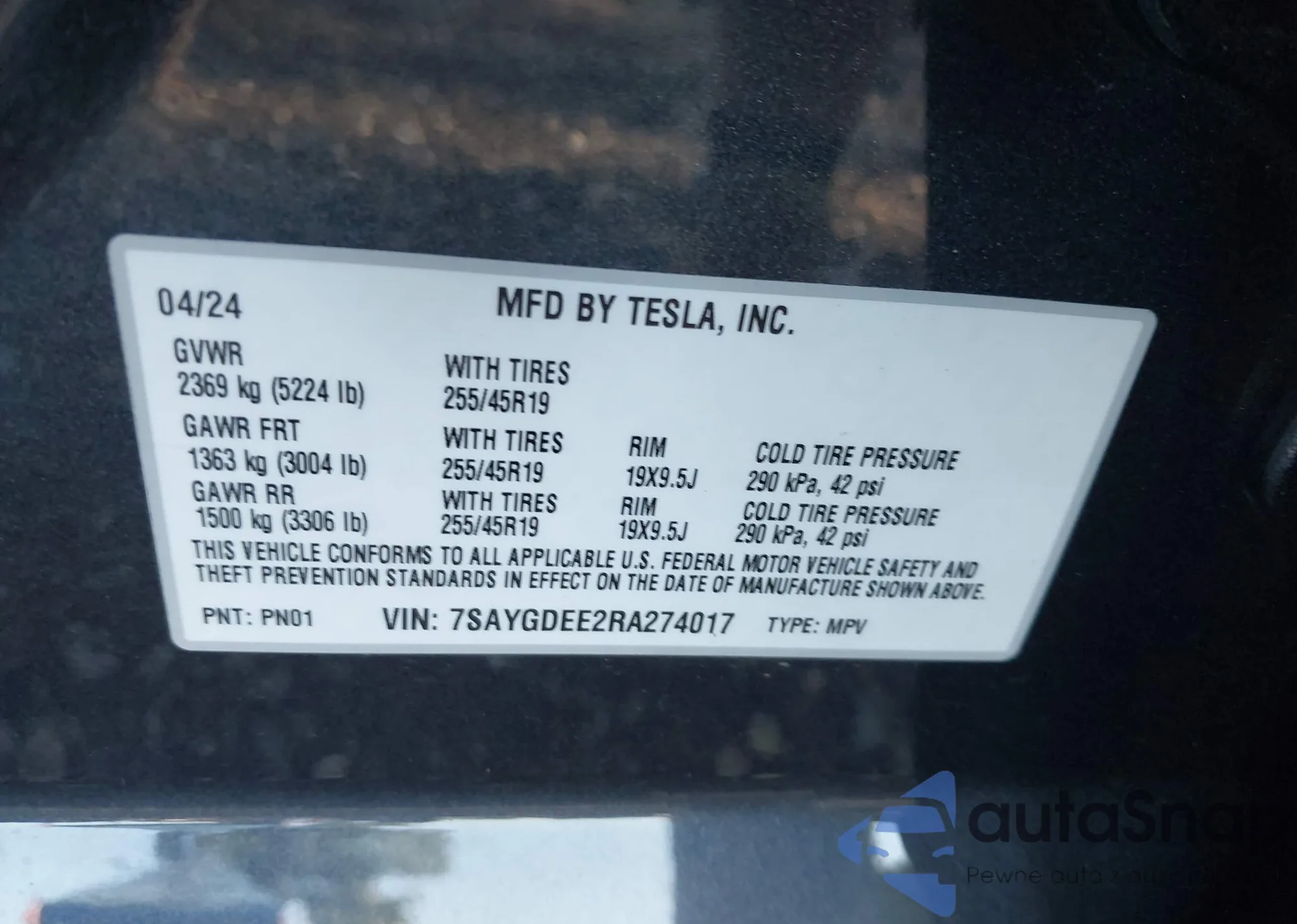 • VIN 7SAYGDEE2RA274017