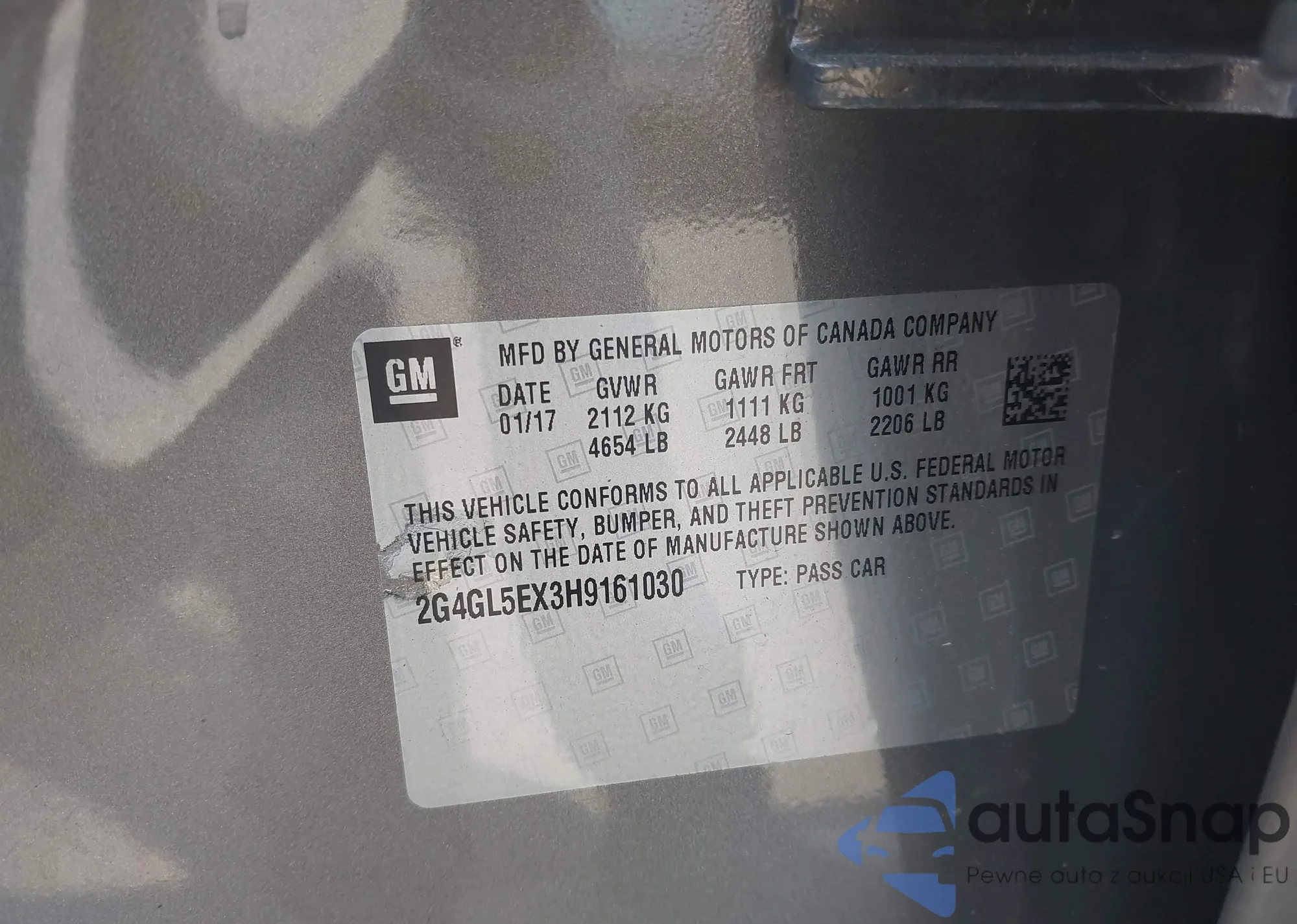 • VIN 2G4GL5EX3H9161030