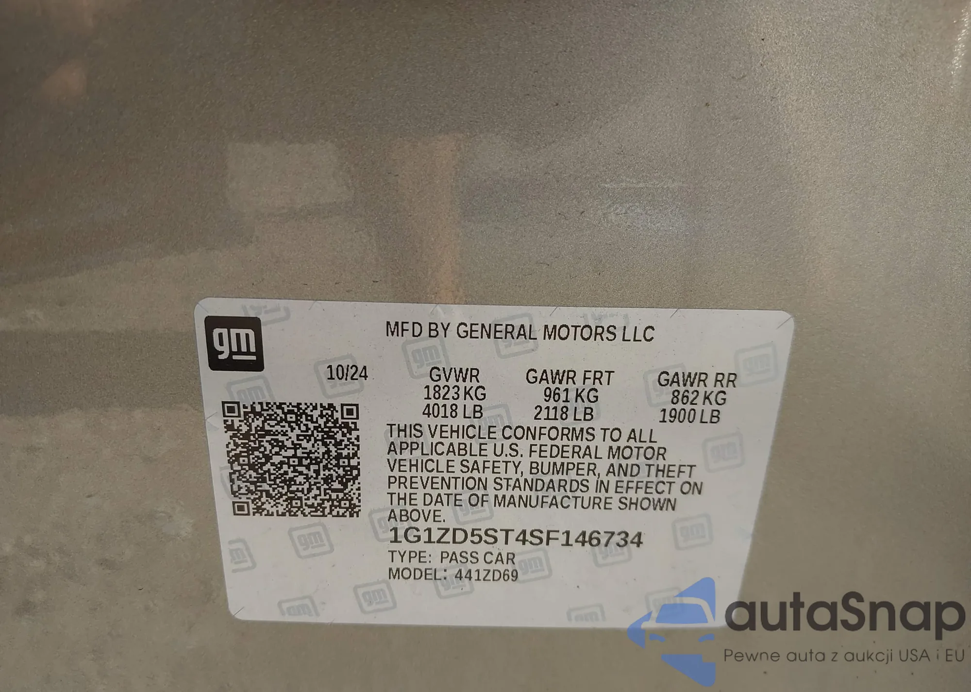 LOT: 42974006 VIN: 1G1ZD5ST4SF146734