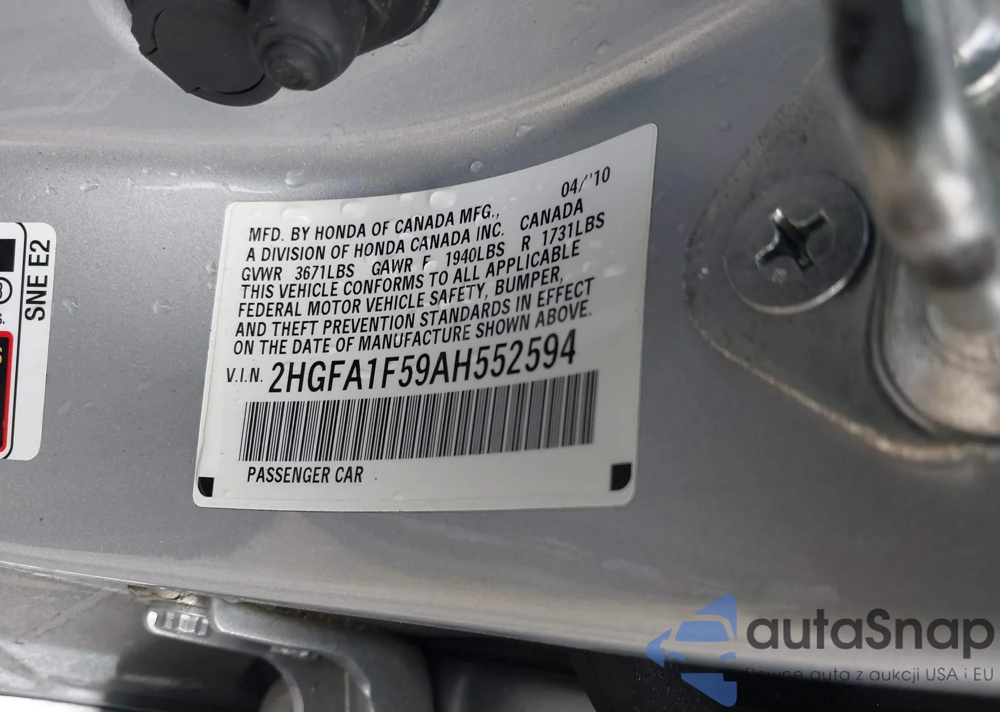 • VIN 2HGFA1F59AH552594
