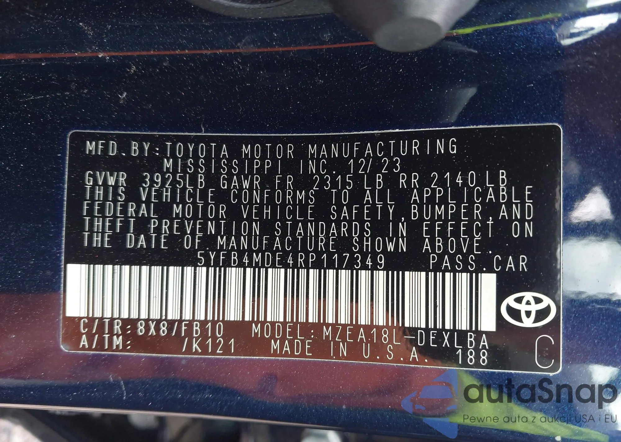 LOT: 42529604 VIN: 5YFB4MDE4RP117349