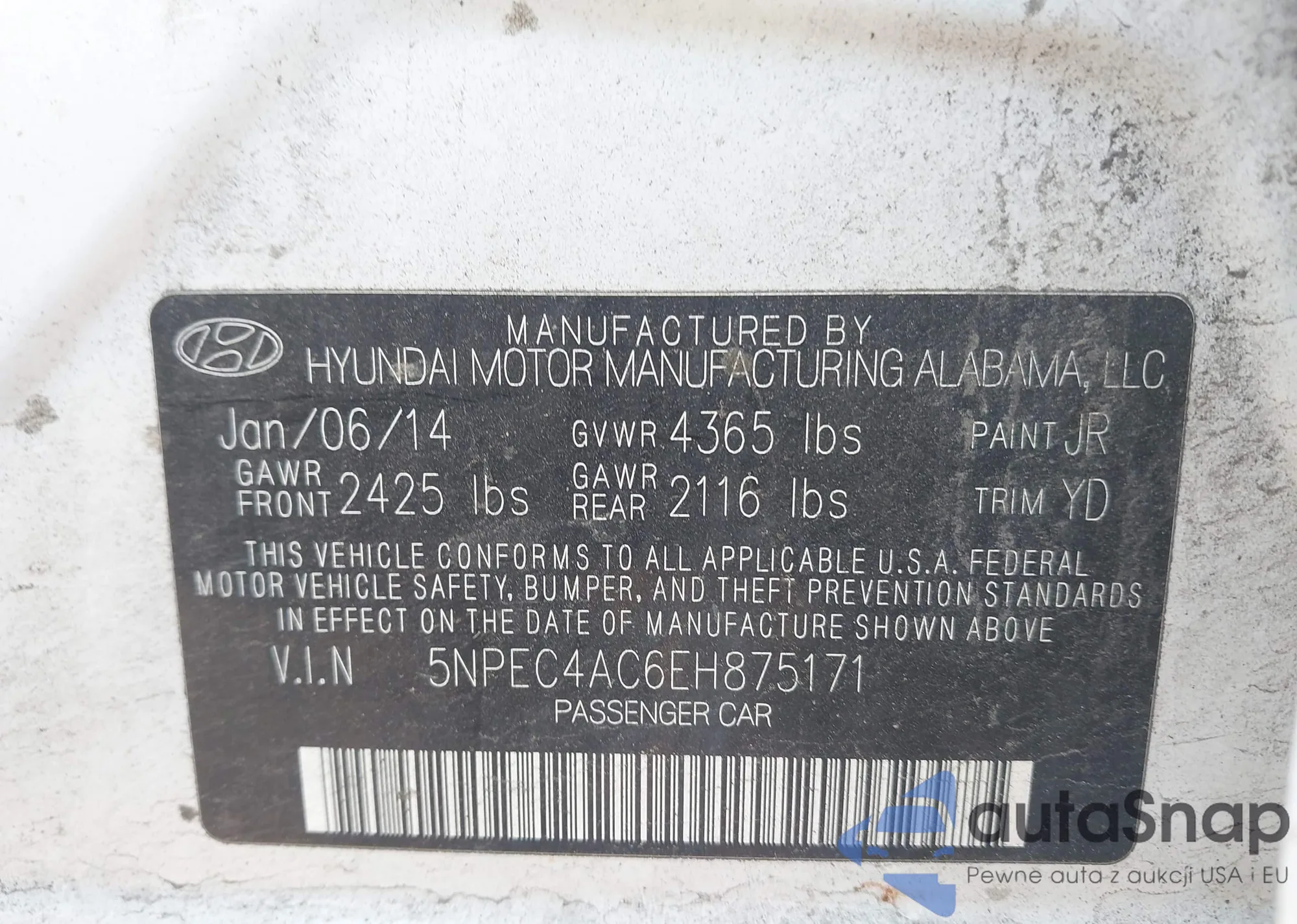 LOT: 42771393 VIN: 5NMJF3AE0NH007388
