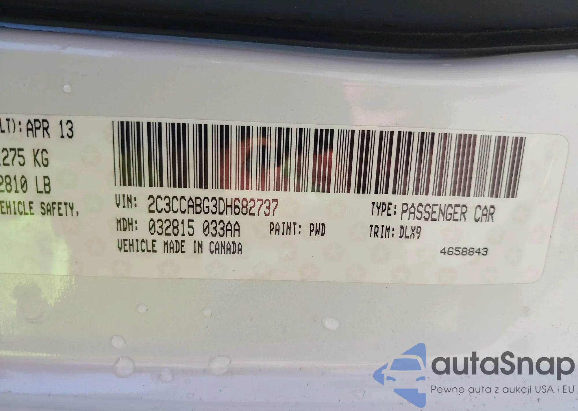 LOT: 42701988 VIN: 2C3CCABG3DH682737