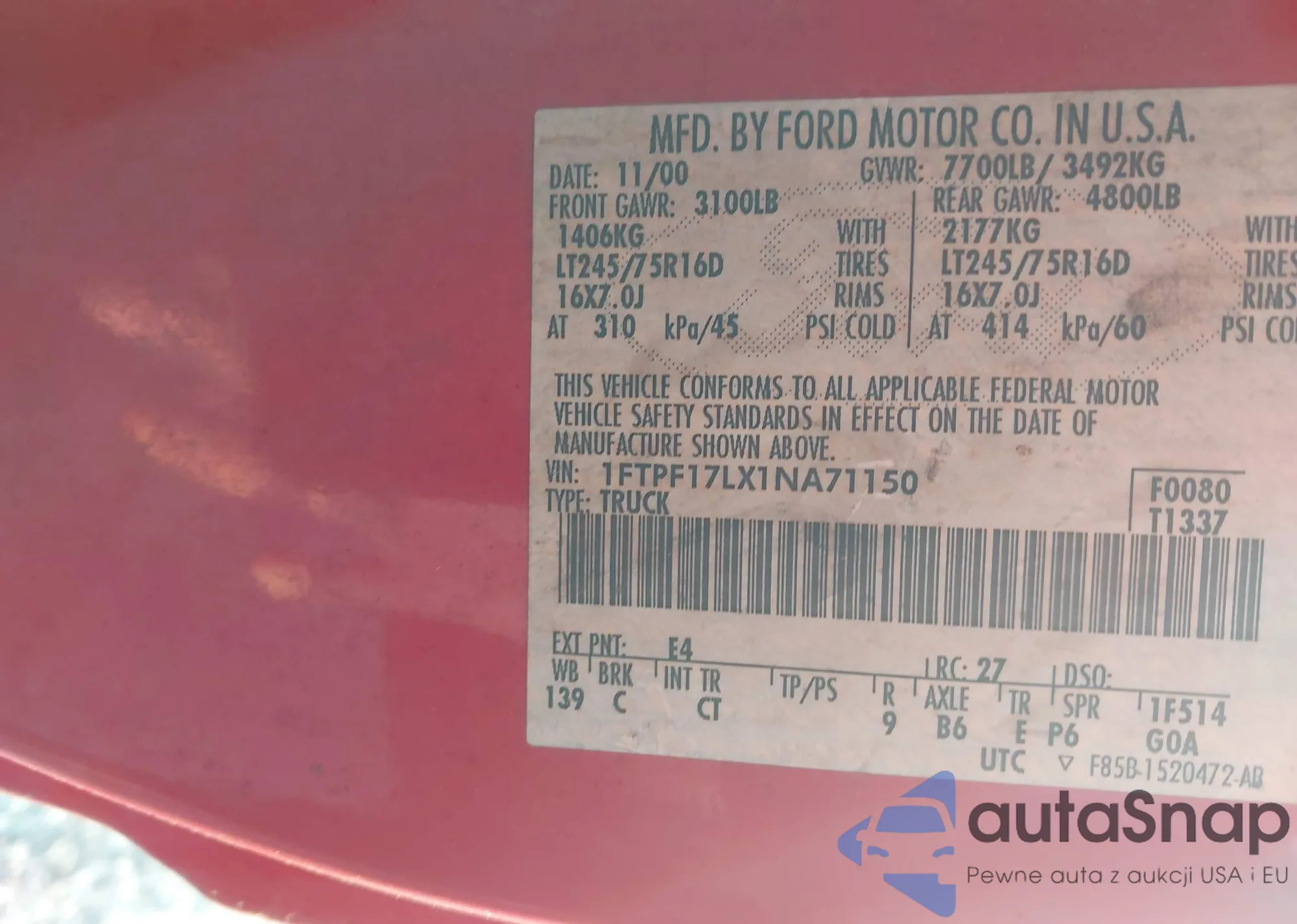 LOT: 42815595 VIN: 1FMJK2A80PEA61744