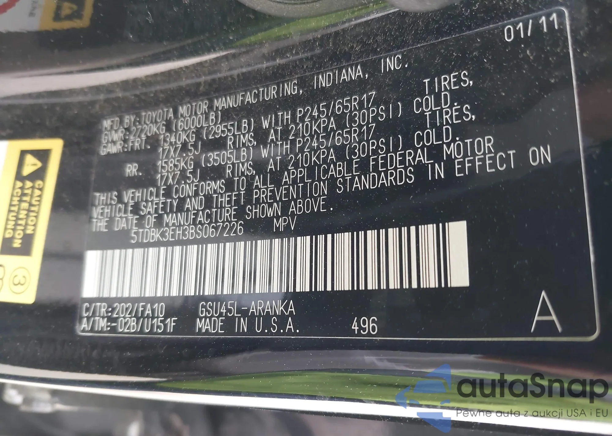 LOT: 43103859 VIN: JTDKN3DU7A0044054