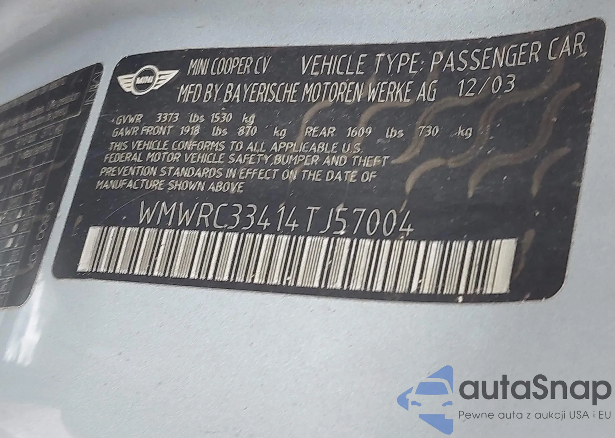 • VIN WMWRC33414TJ57004