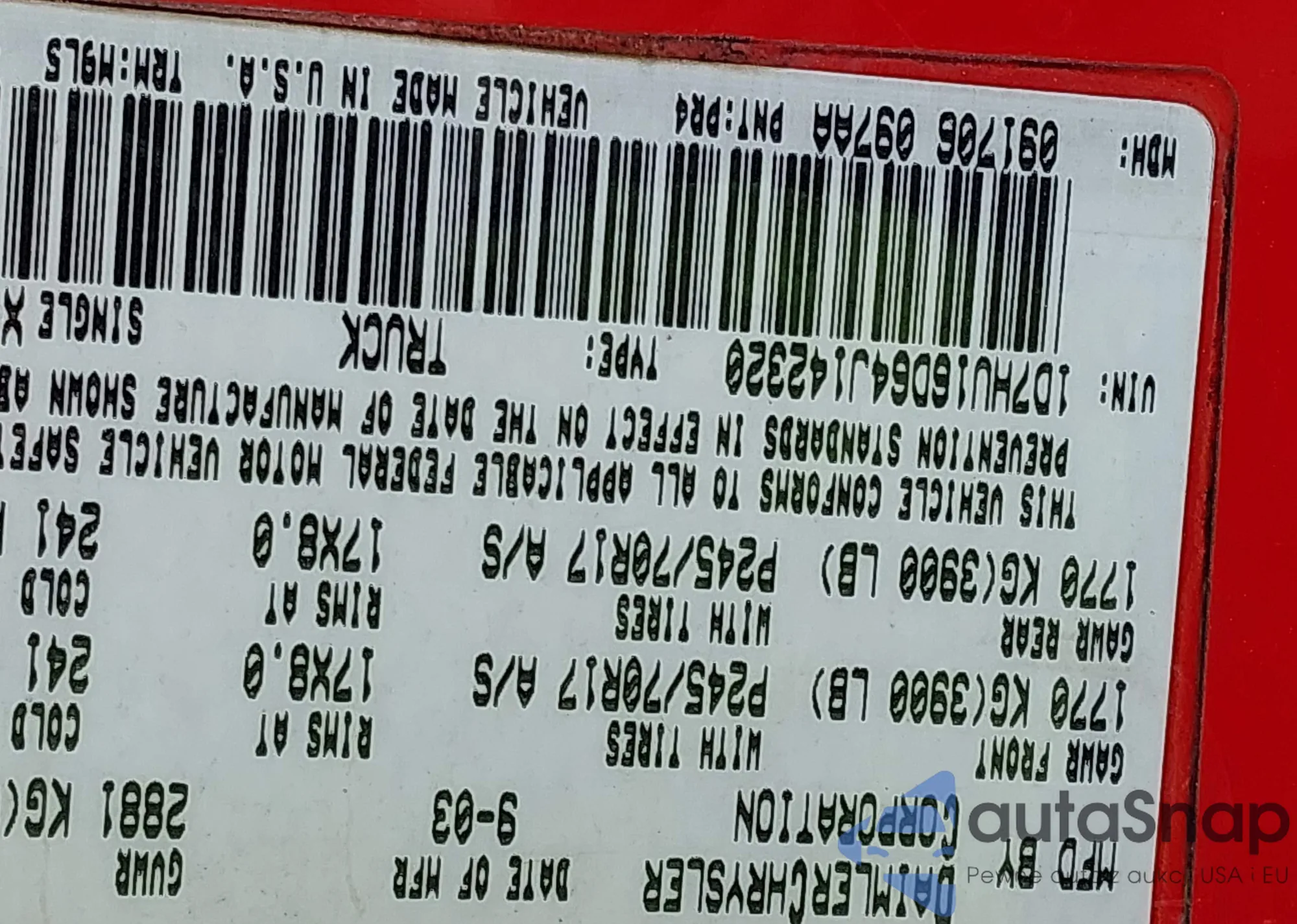 LOT: 42902119 VIN: 1D7HU16D64J142320