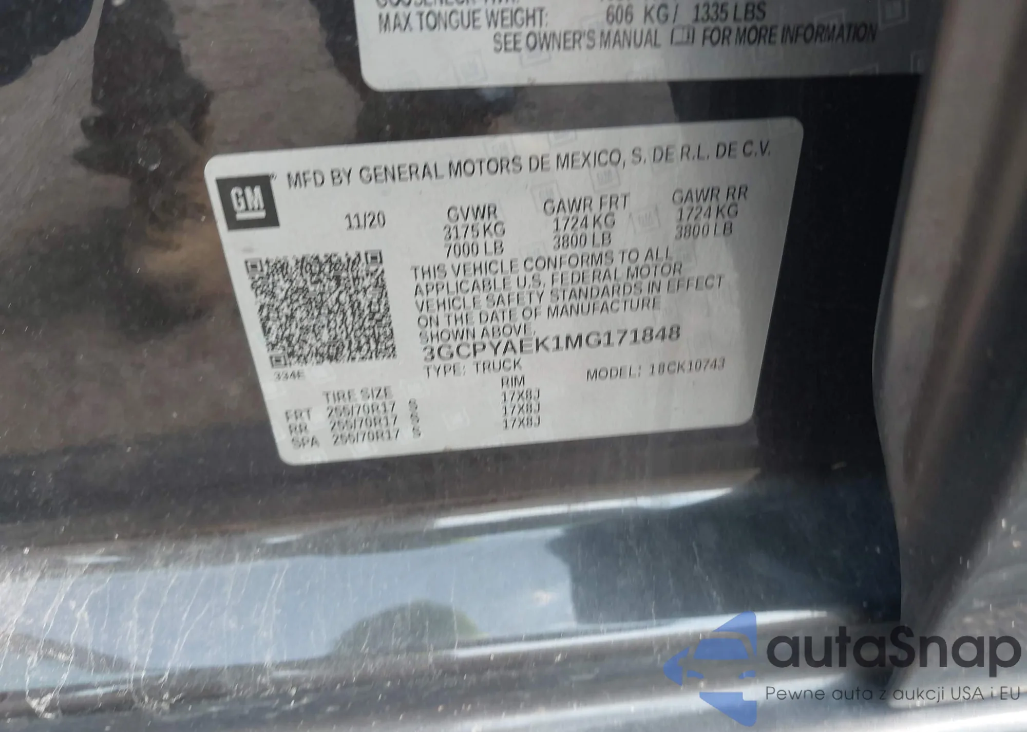 LOT: 42769069 VIN: 3GCPYAEK1MG171848