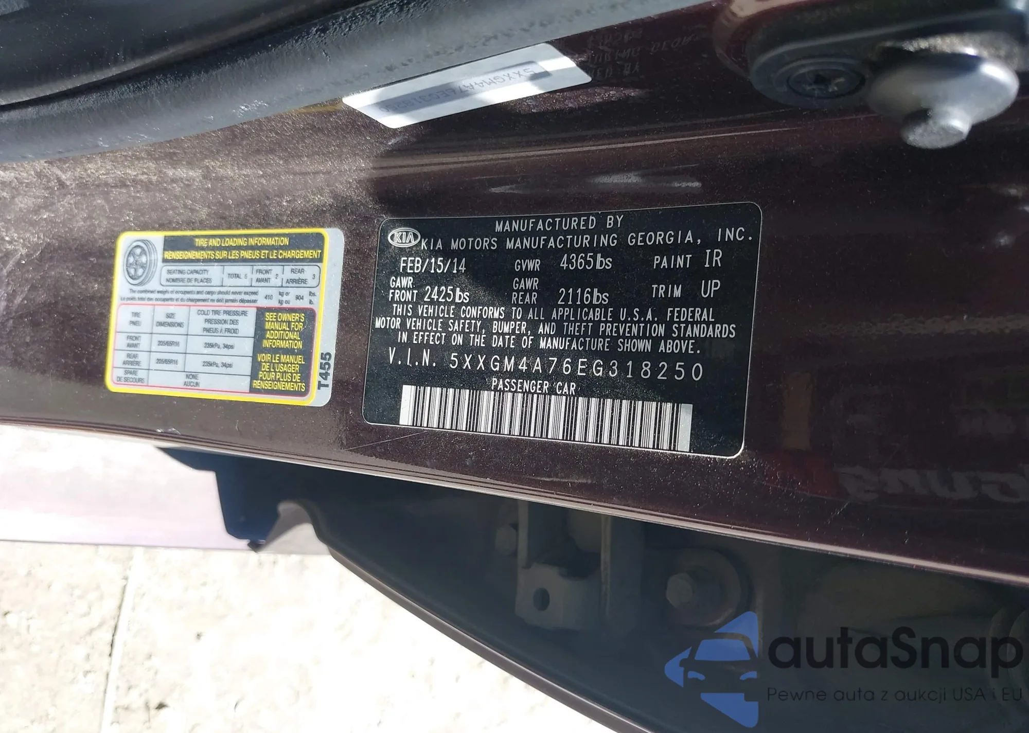 • VIN 5XXGM4A76EG318250