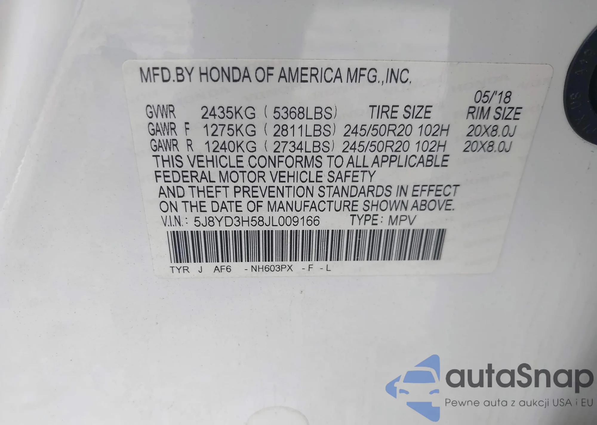 LOT: 42694851 VIN: 1HGCP2F88CA064014
