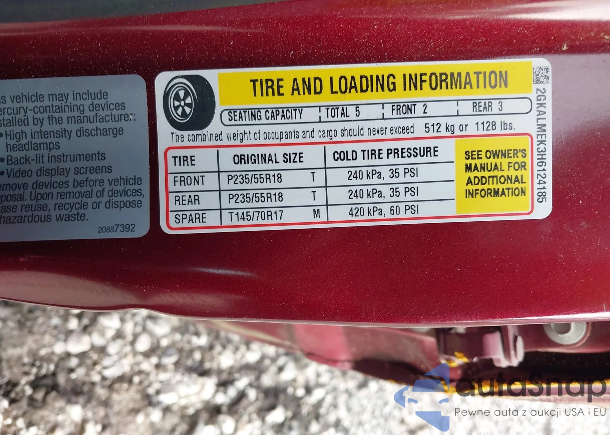 • VIN 2GKALMEK3H6124185