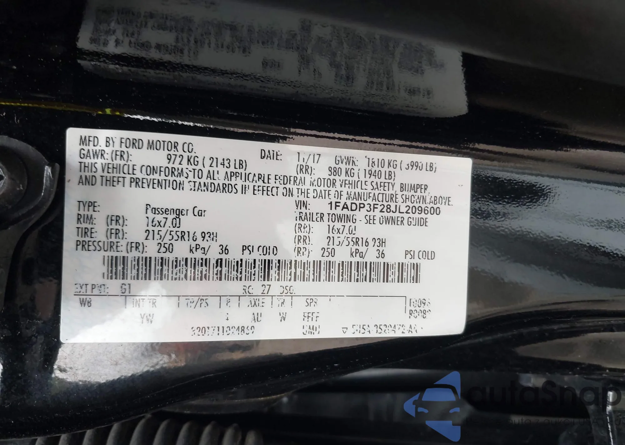 LOT: 42962883 VIN: 1FADP3F28JL209600