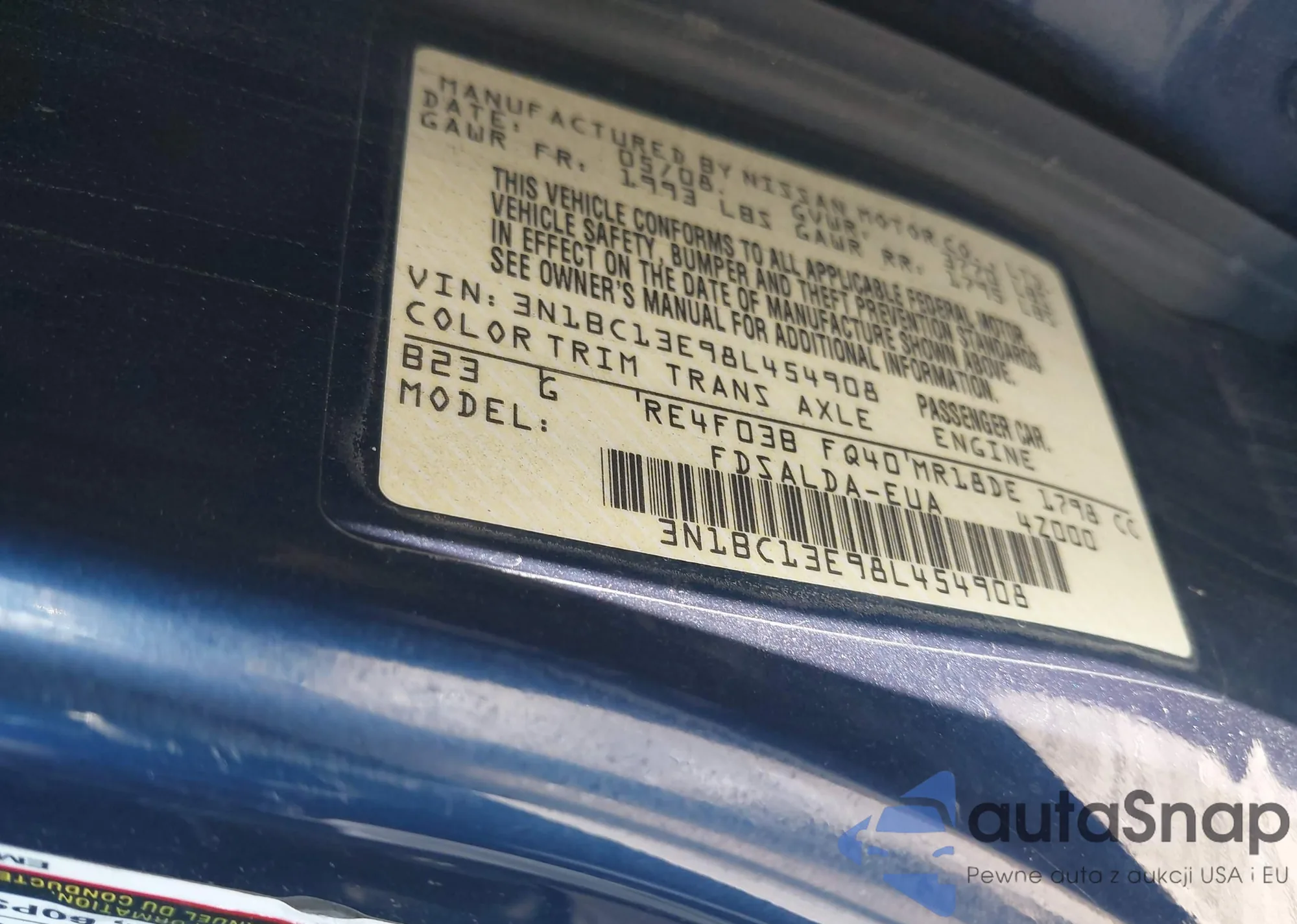 • VIN 3N1BC13E98L454908