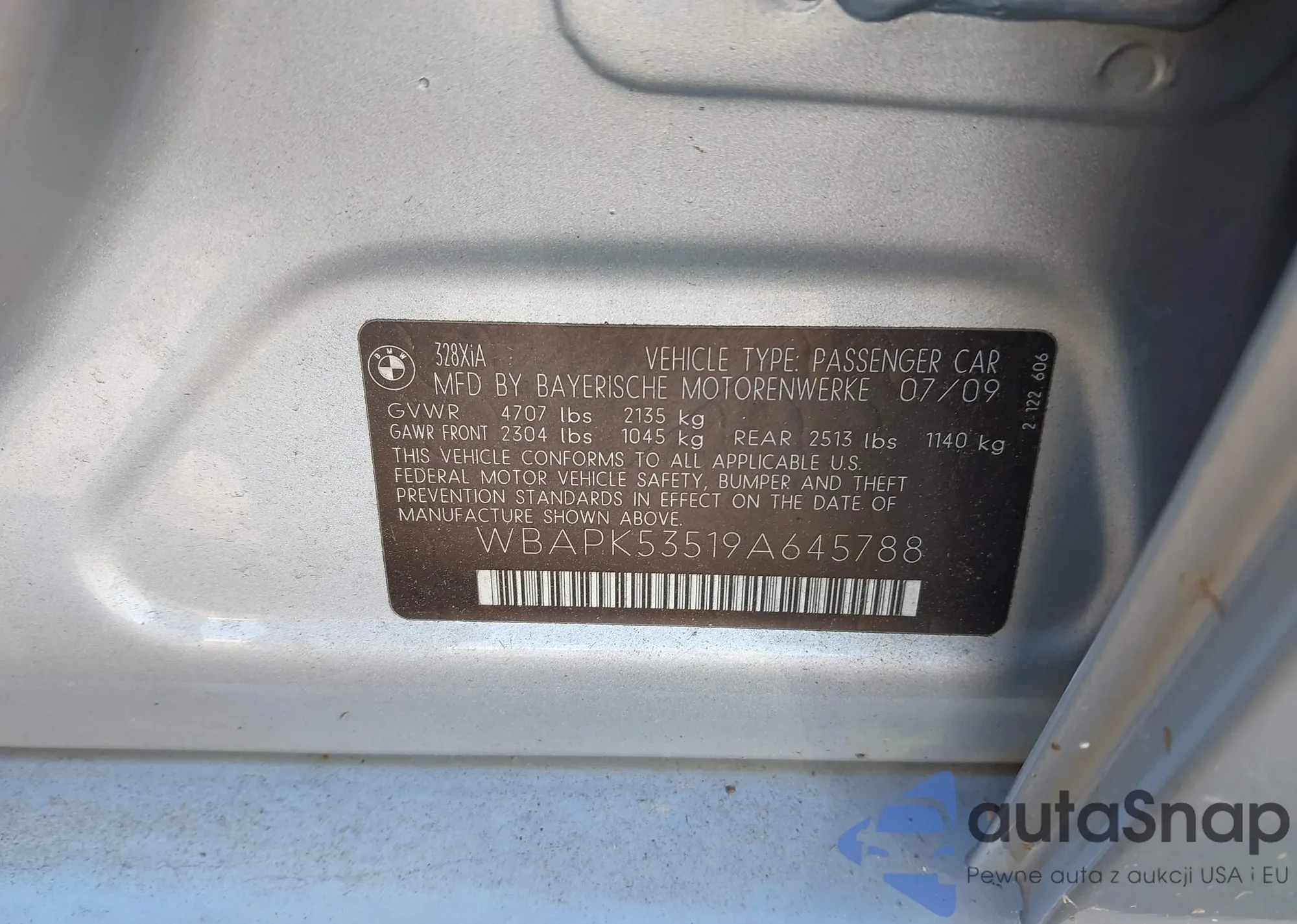 • VIN WBAPK53519A645788