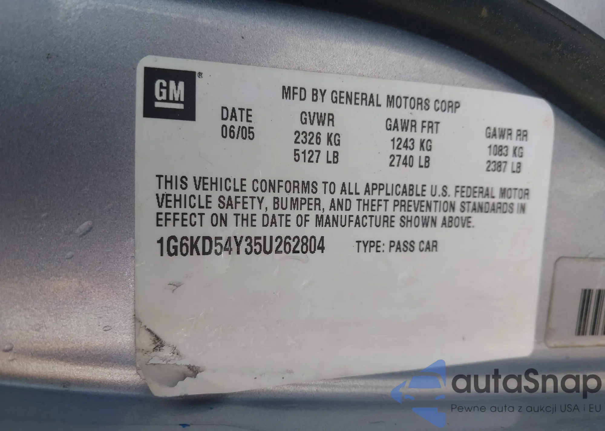 • VIN 1G6KD54Y35U262804