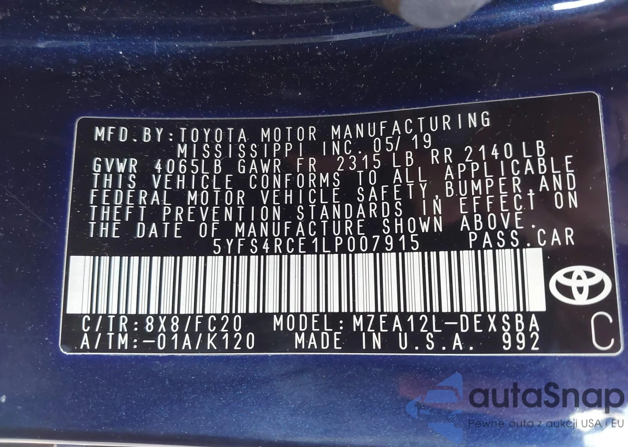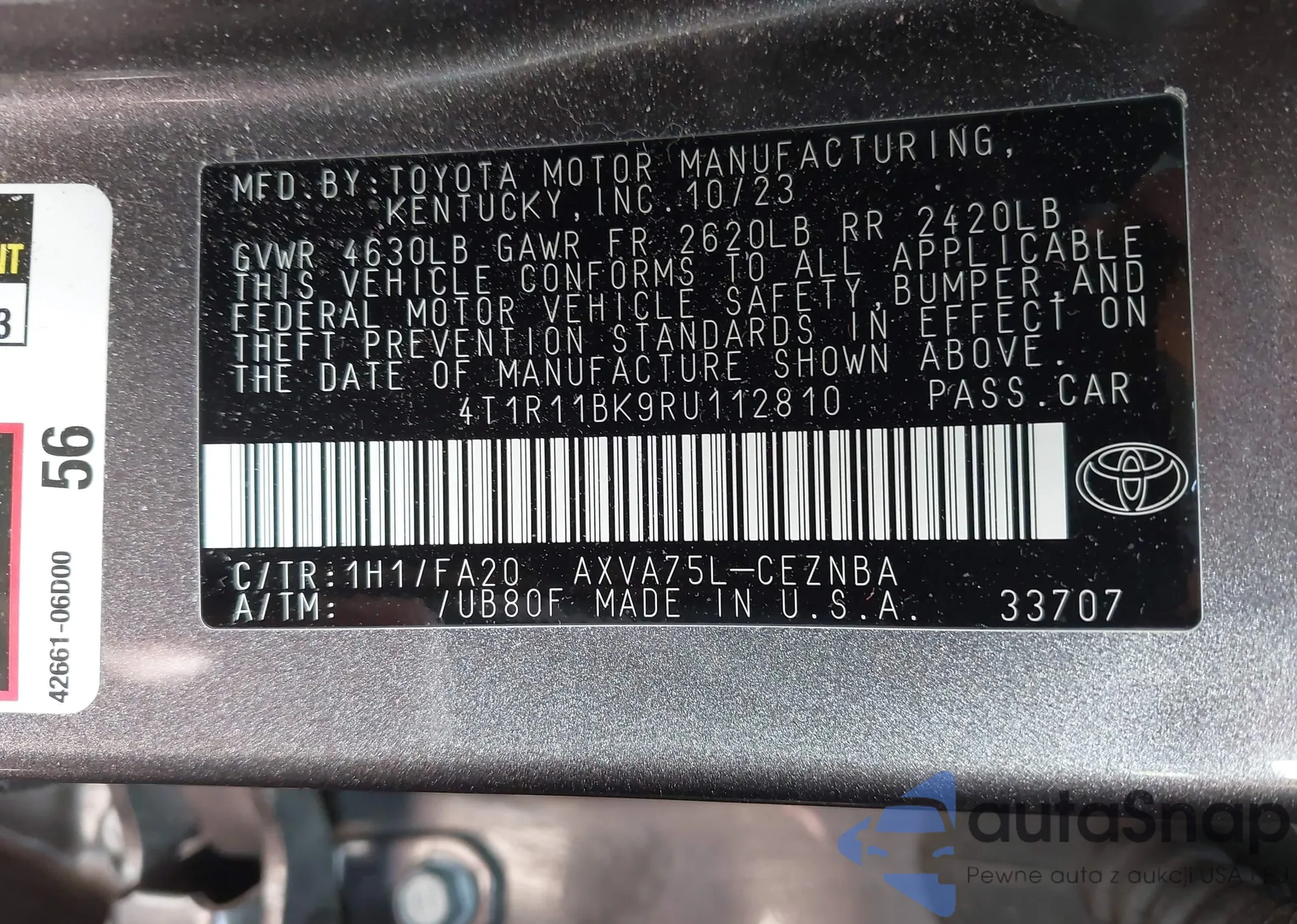 • VIN 4T1R11BK9RU112810
