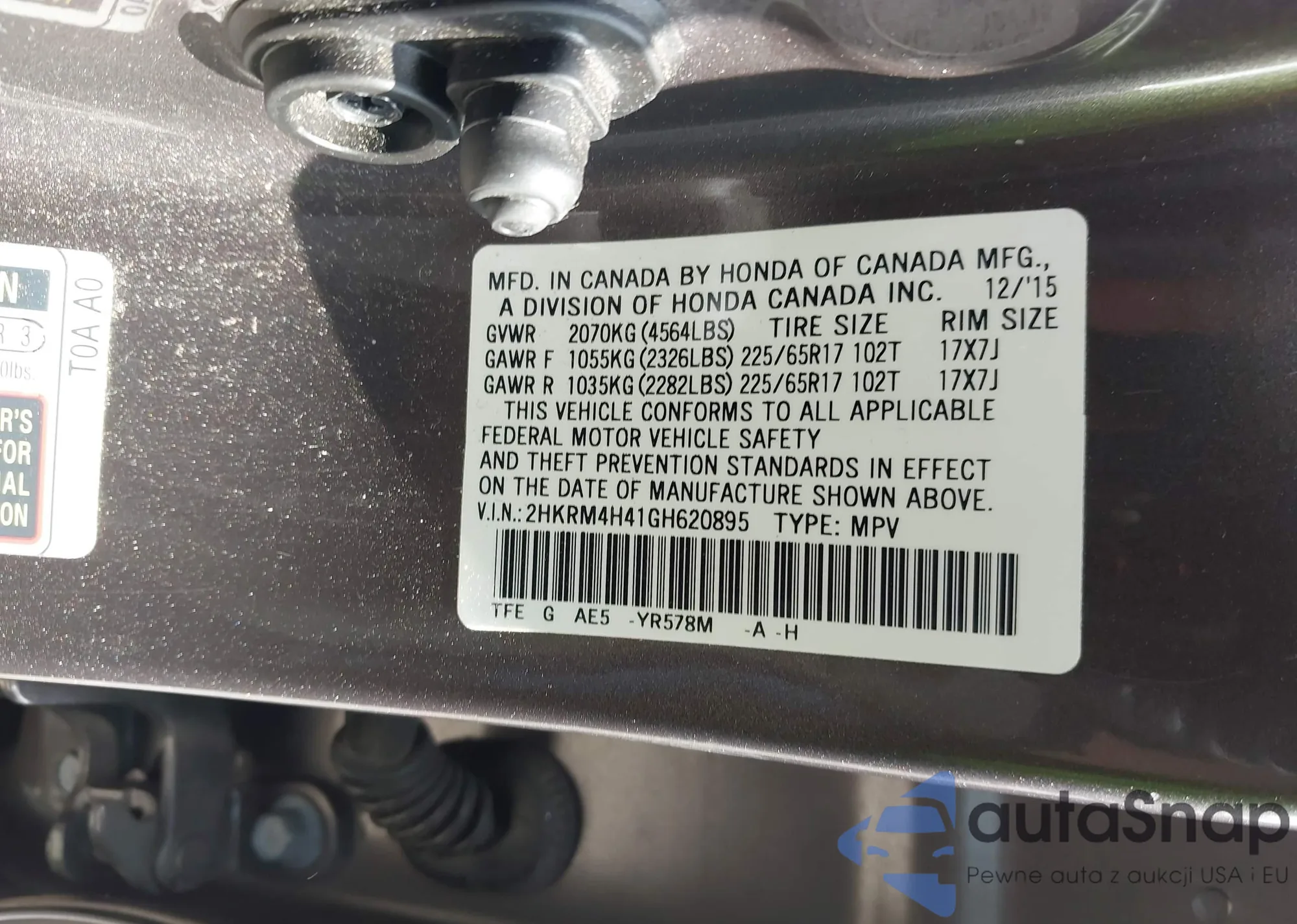 • VIN 2HKRM4H41GH620895
