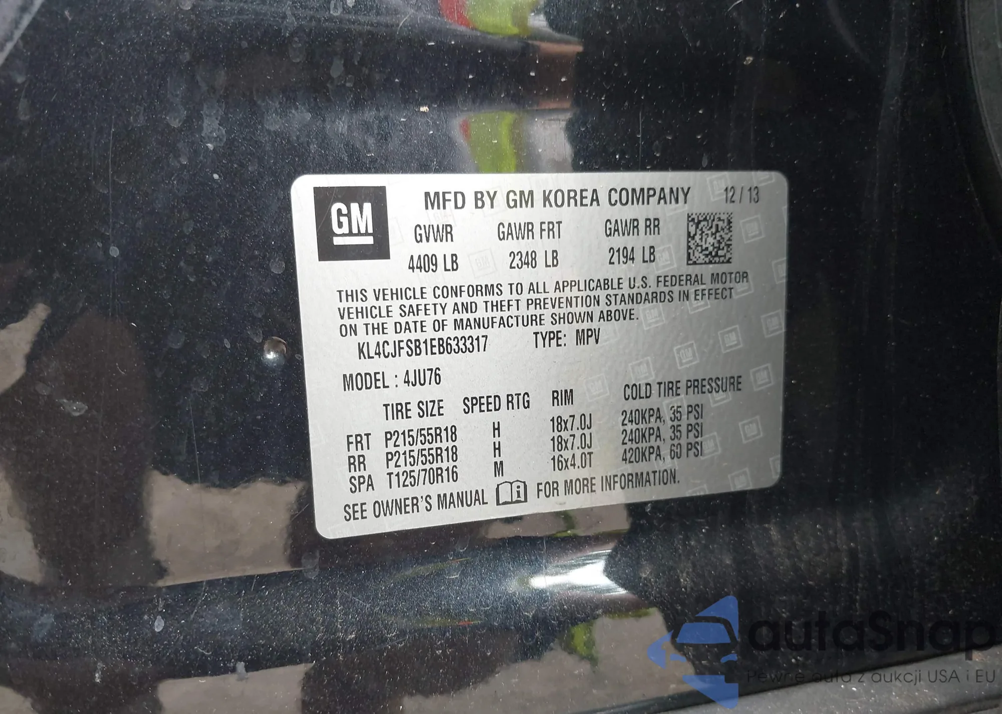 LOT: 42937950 VIN: SALVP2BG2DH761202