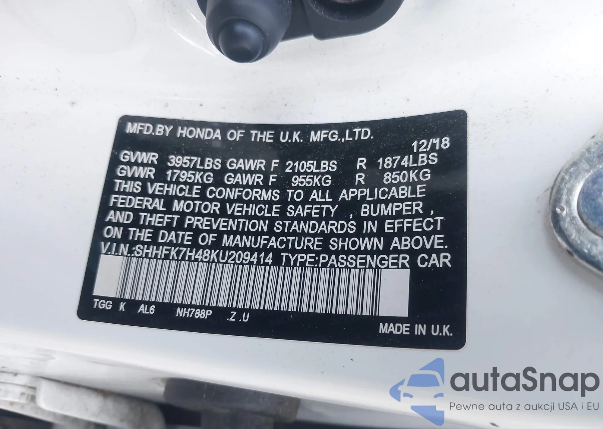 • VIN 5NPEB4AC9BH046819