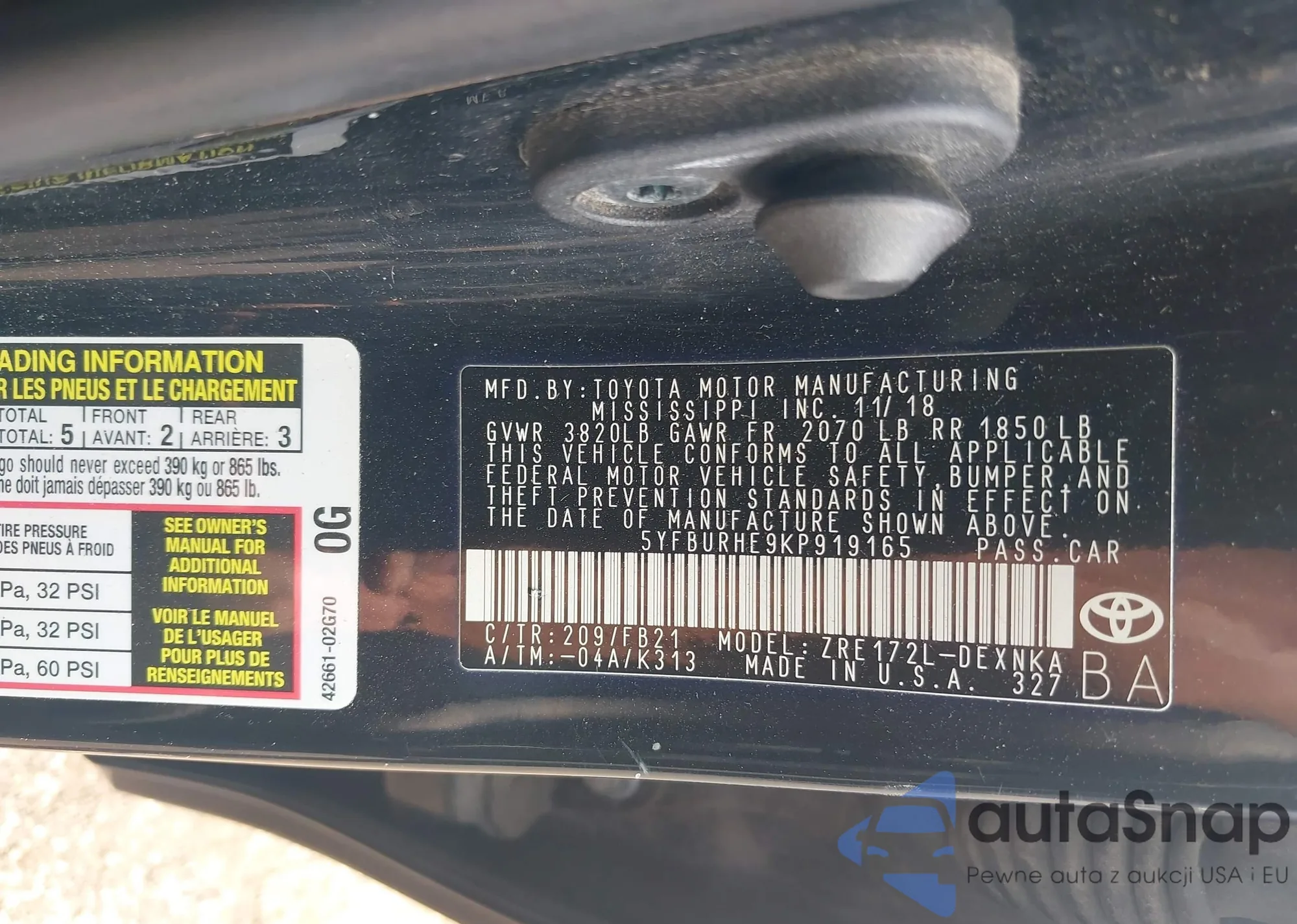 LOT: 42764659 VIN: JT8BD68S9X0074659