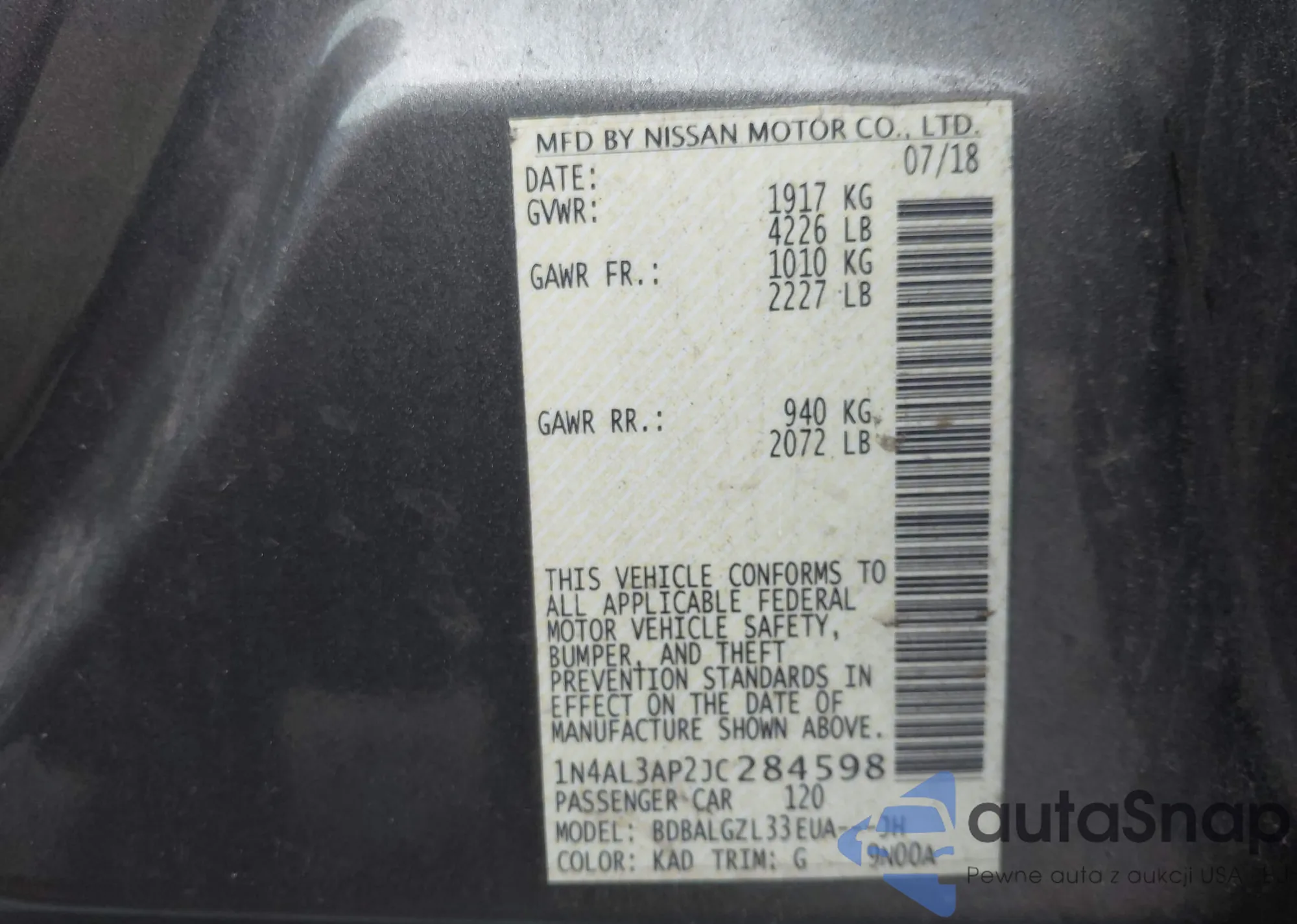 LOT: 42611604 VIN: 1N4AL3AP2JC284598