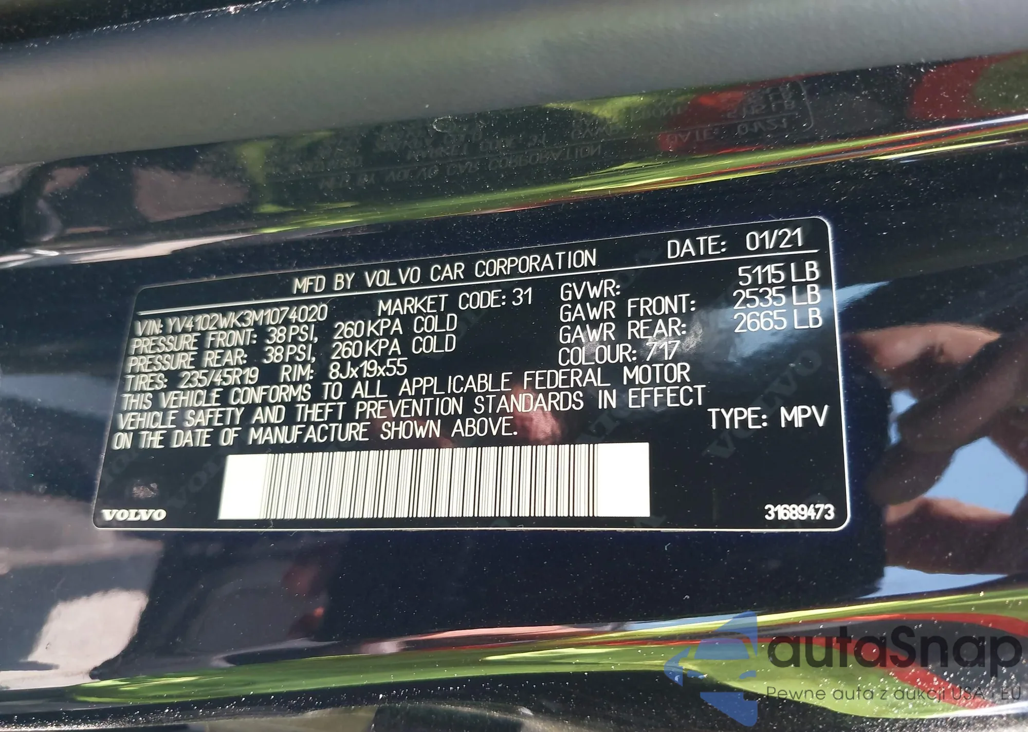 • VIN YV4102WK3M1074020