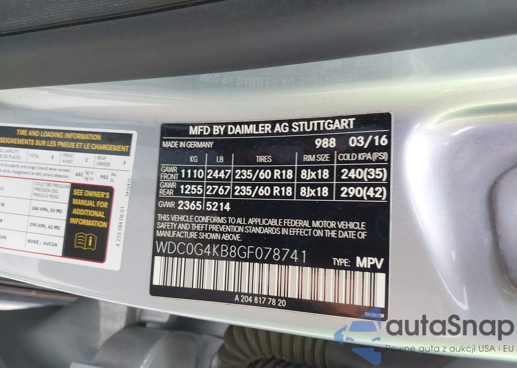 LOT: 42903892 VIN: WDC0G4KB8GF078741