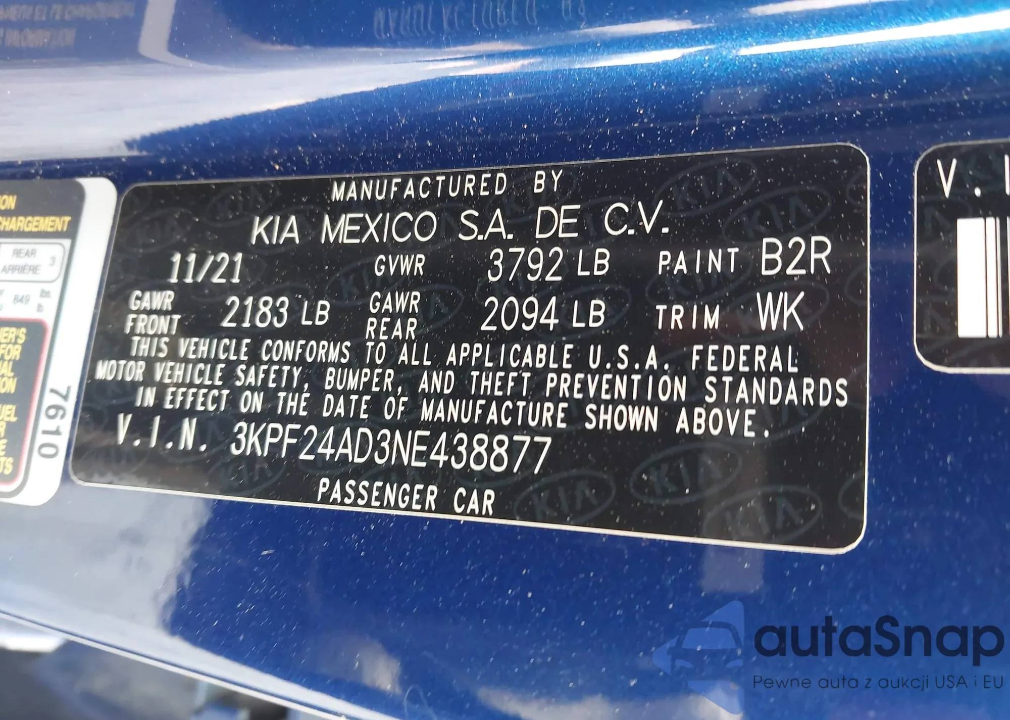 • VIN 3KPF24AD3NE438877