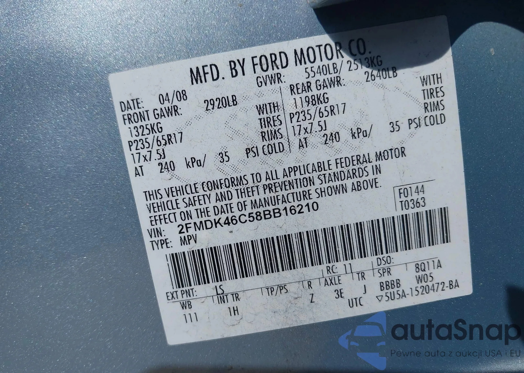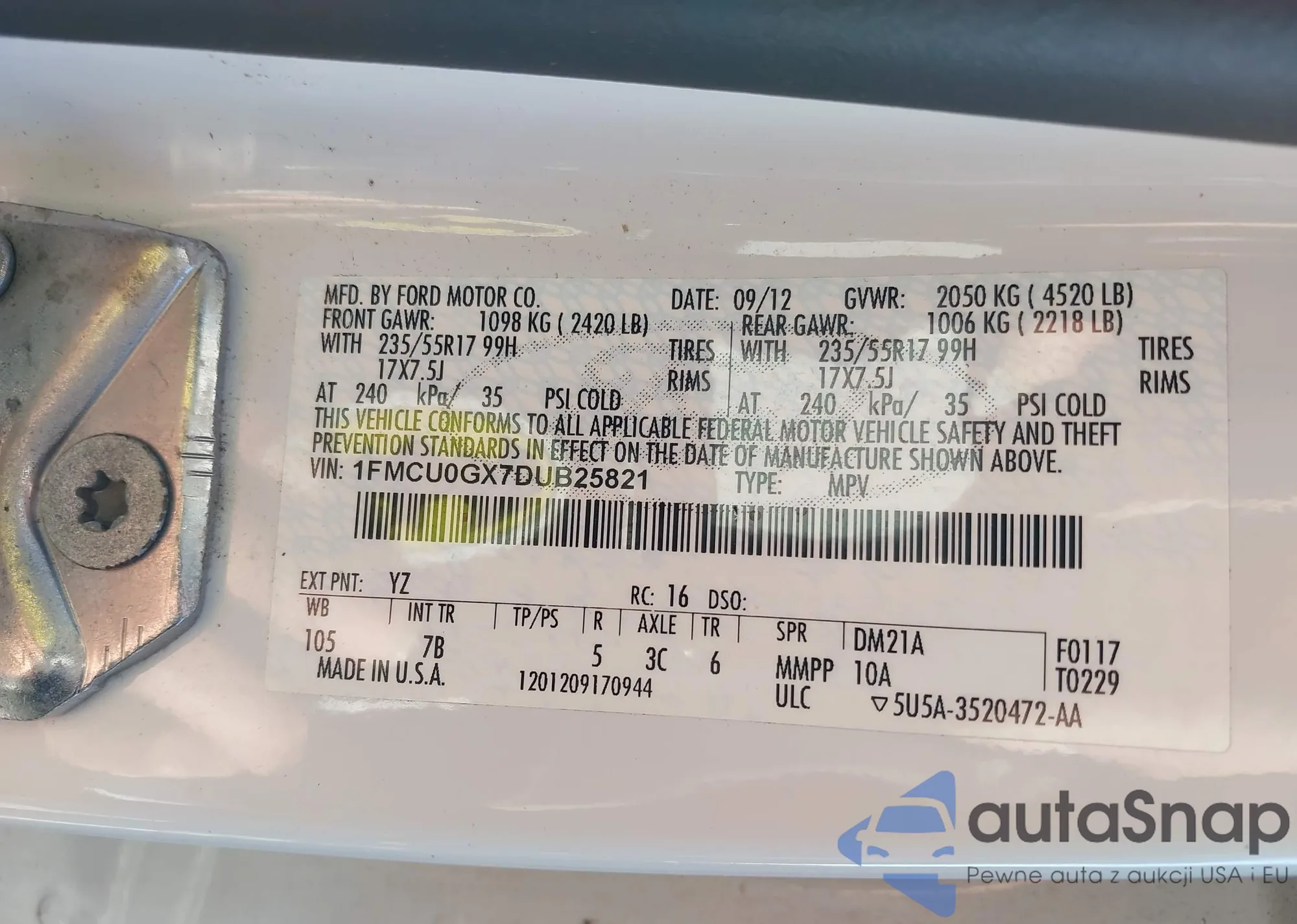• VIN 1FMCU0GX7DUB25821