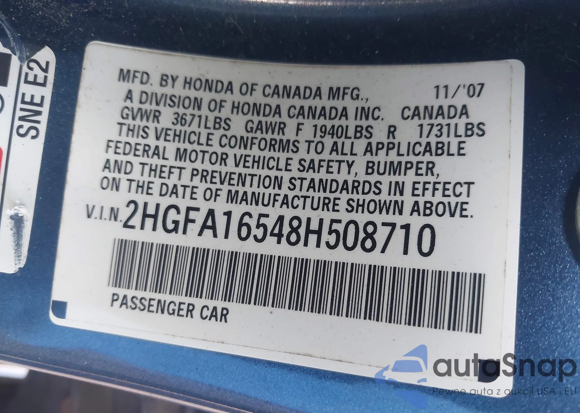 • VIN 2HGFA16548H508710