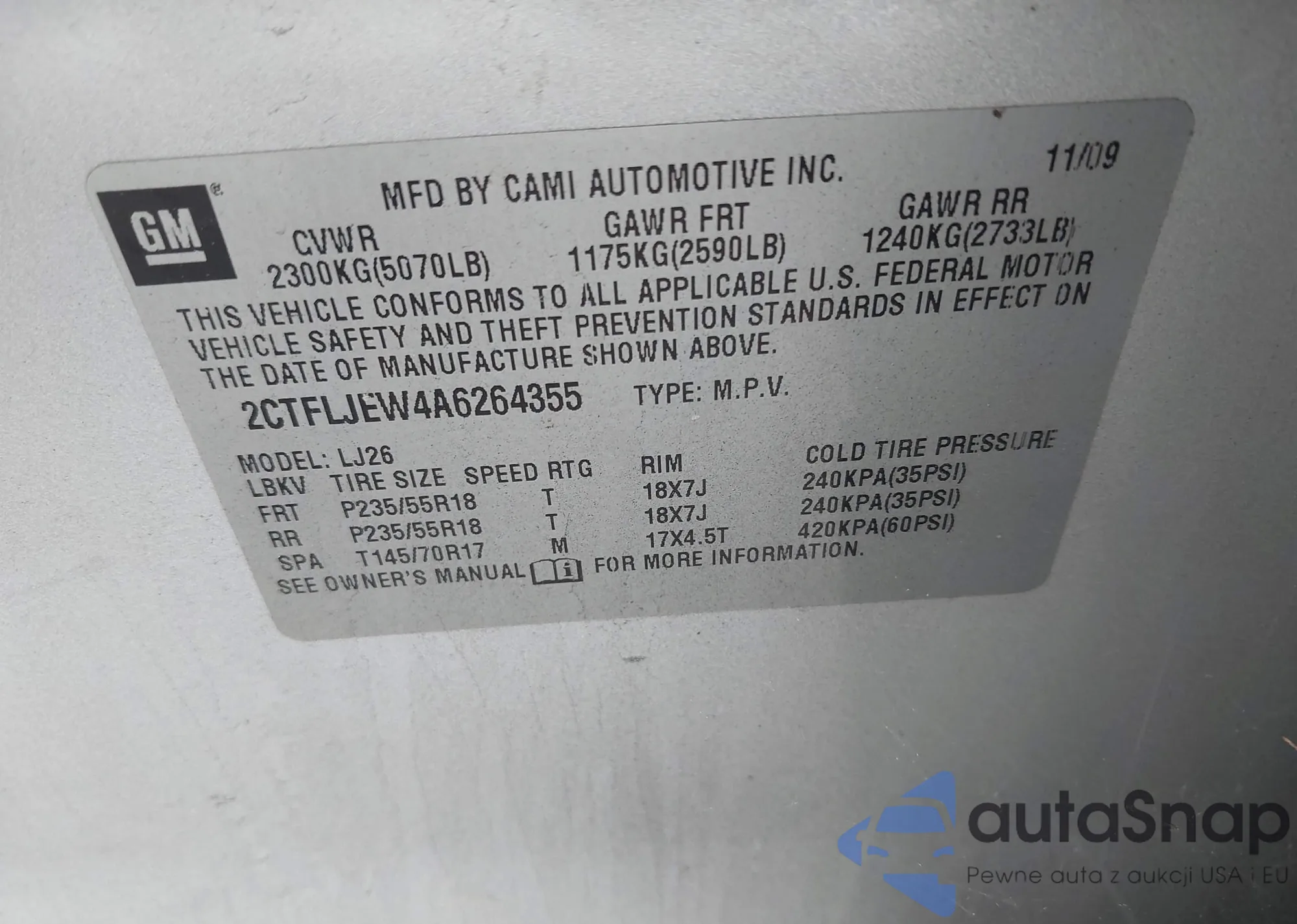 LOT: 43018024 VIN: 2G61T5S36D9118214