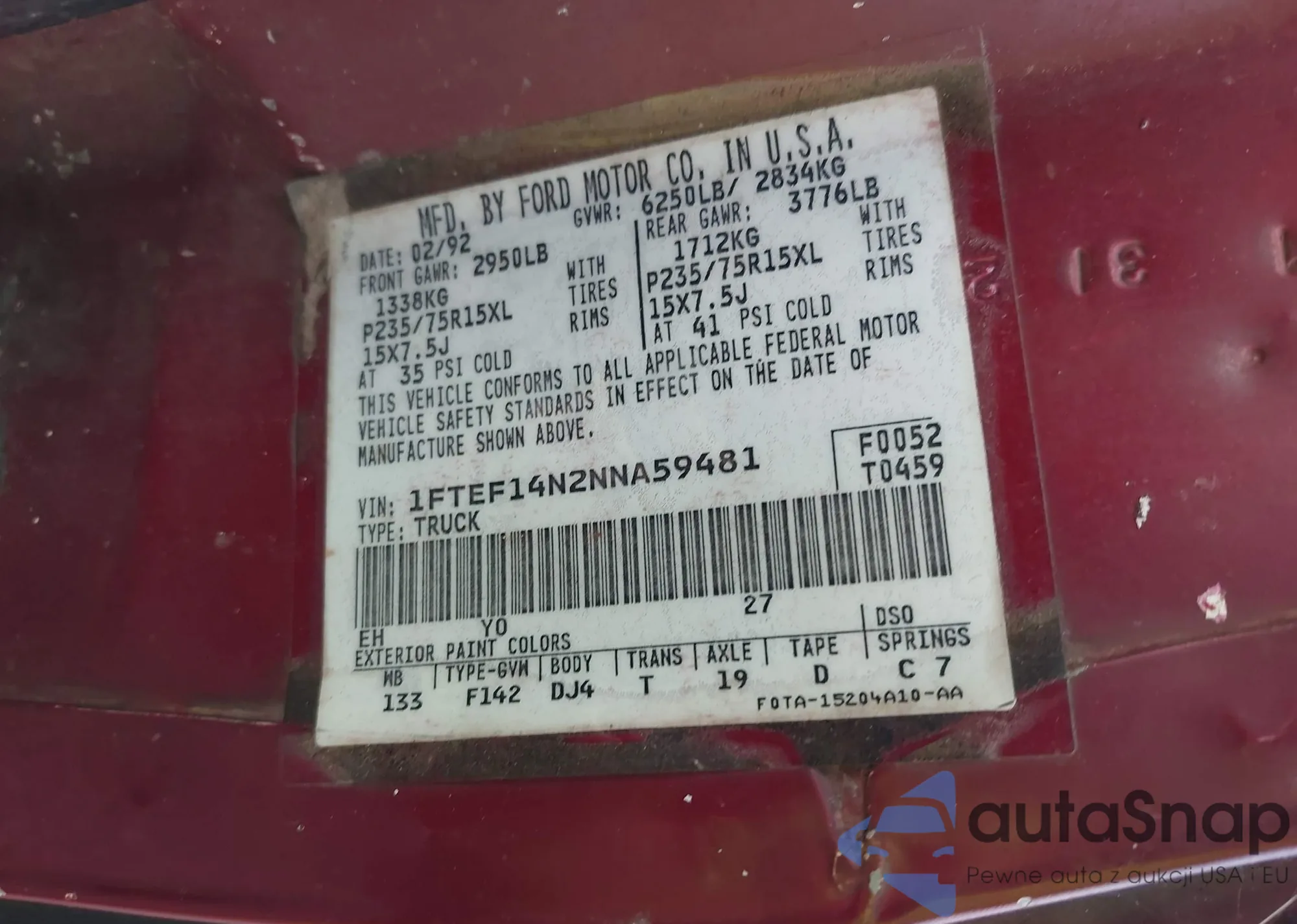 • Lot number 41581862