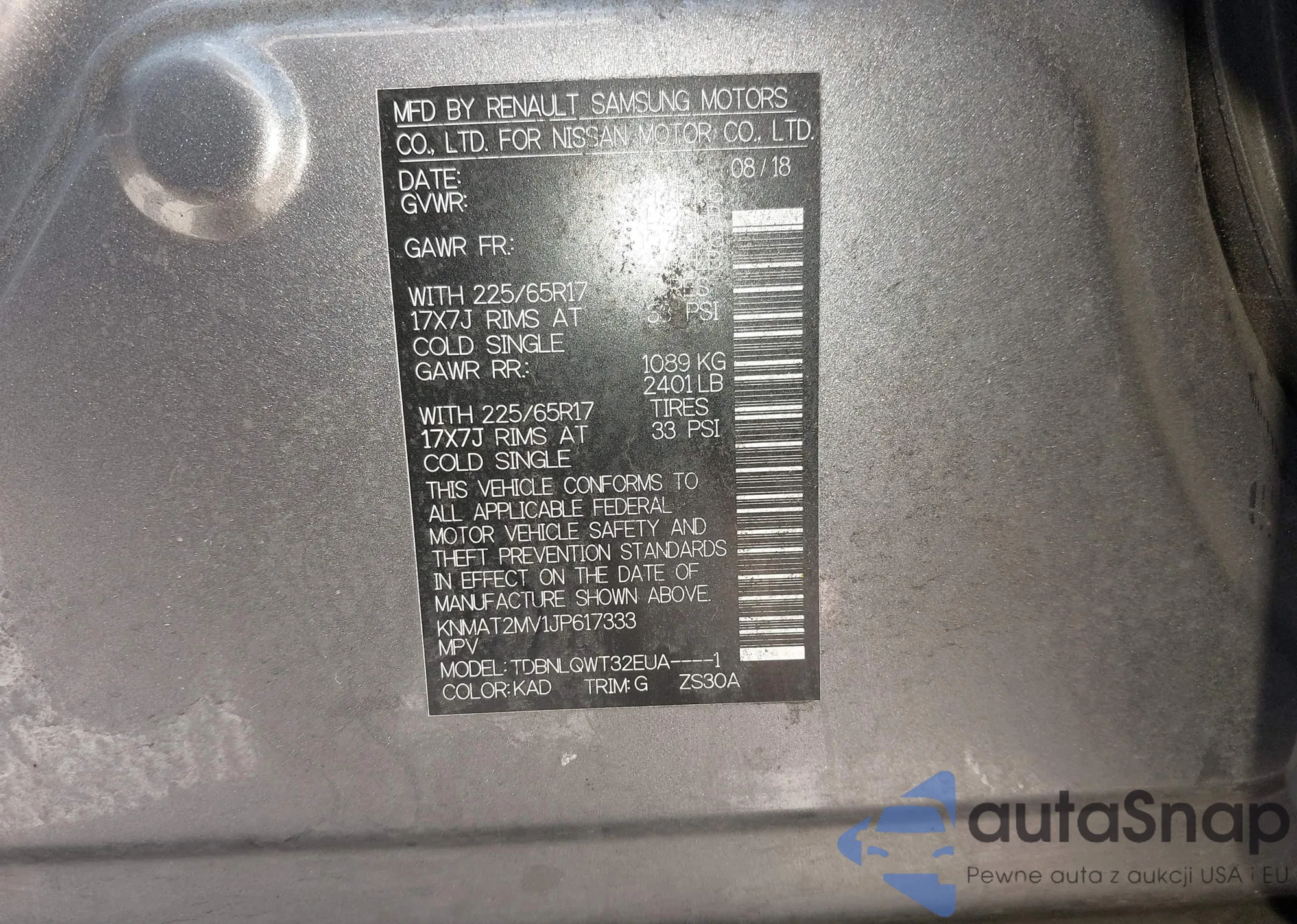 LOT: 42944804 VIN: KNDPUCAG9P7065785