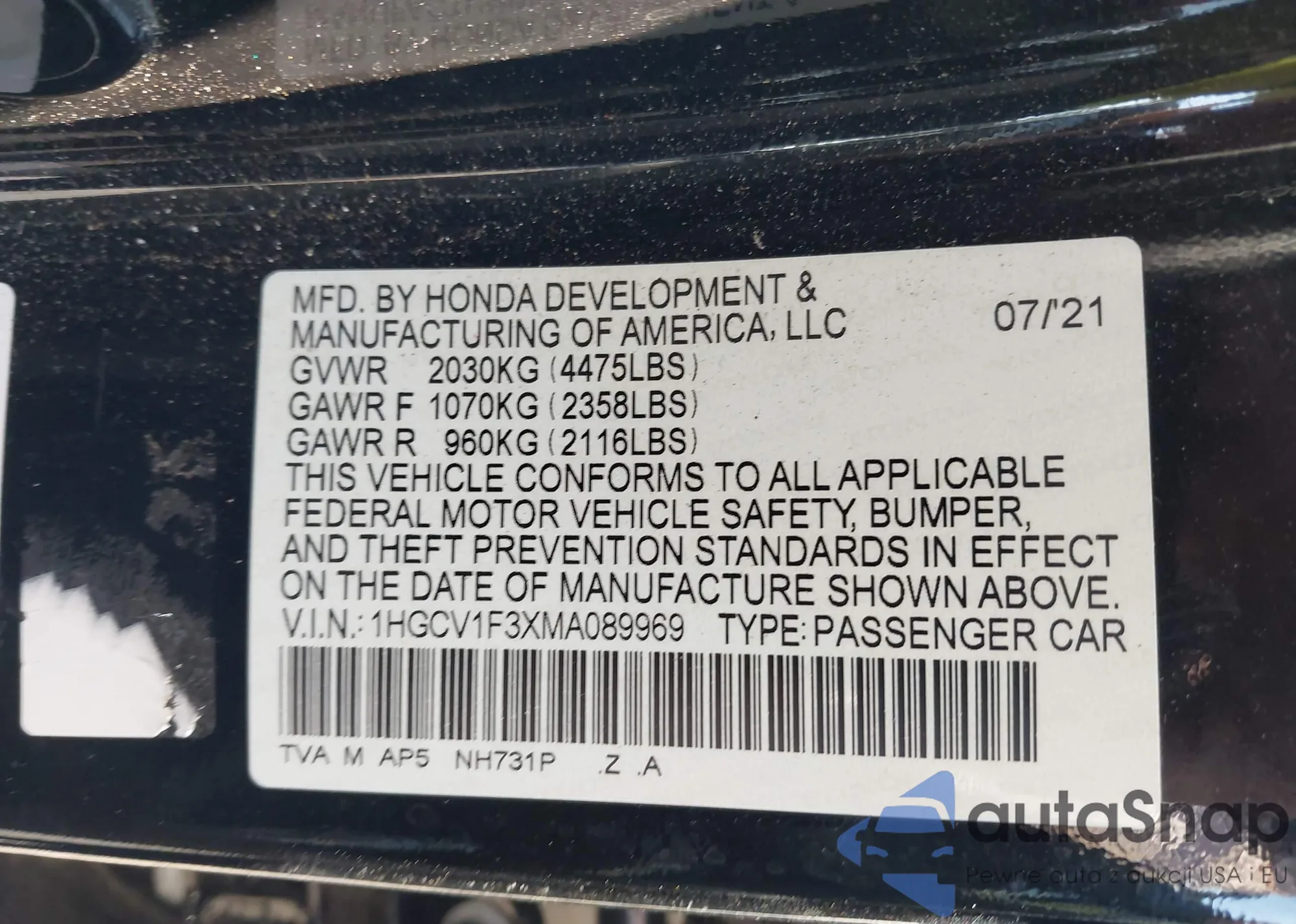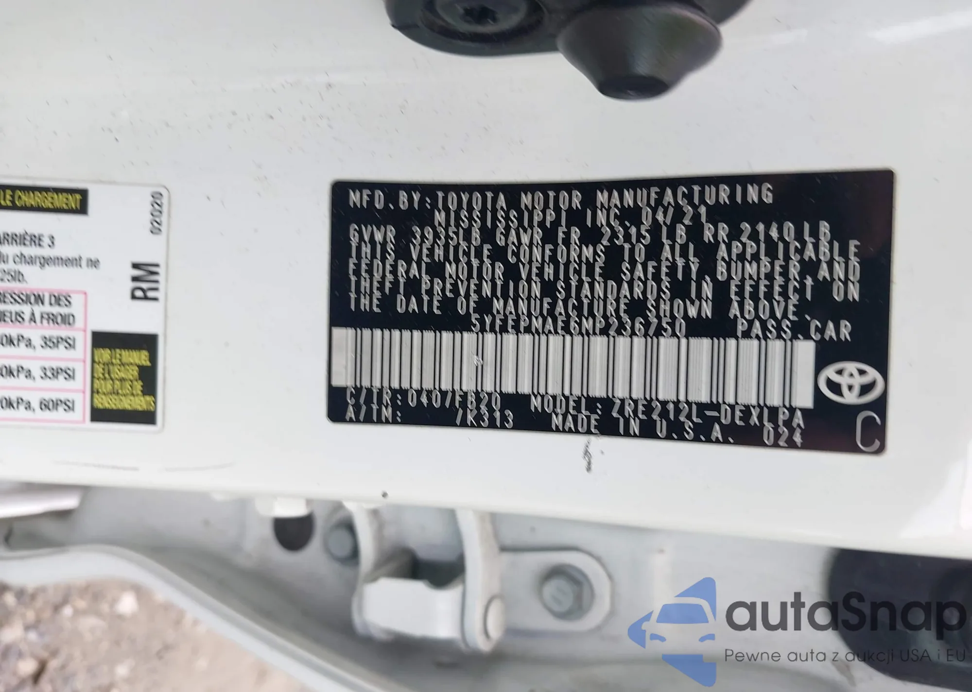 LOT: 42845411 VIN: 5YFEPMAE6MP236750