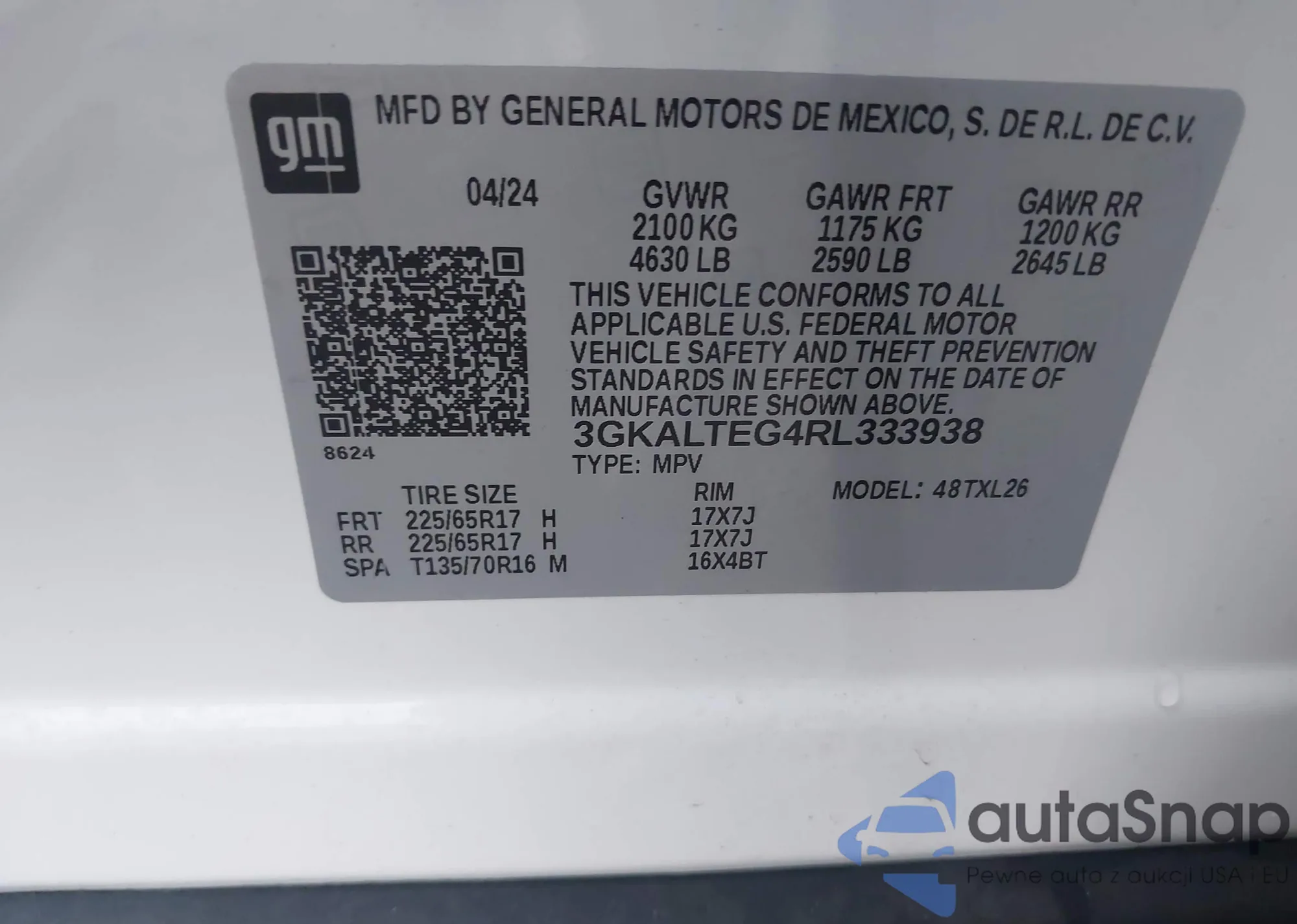 • VIN 3GKALTEG4RL333938