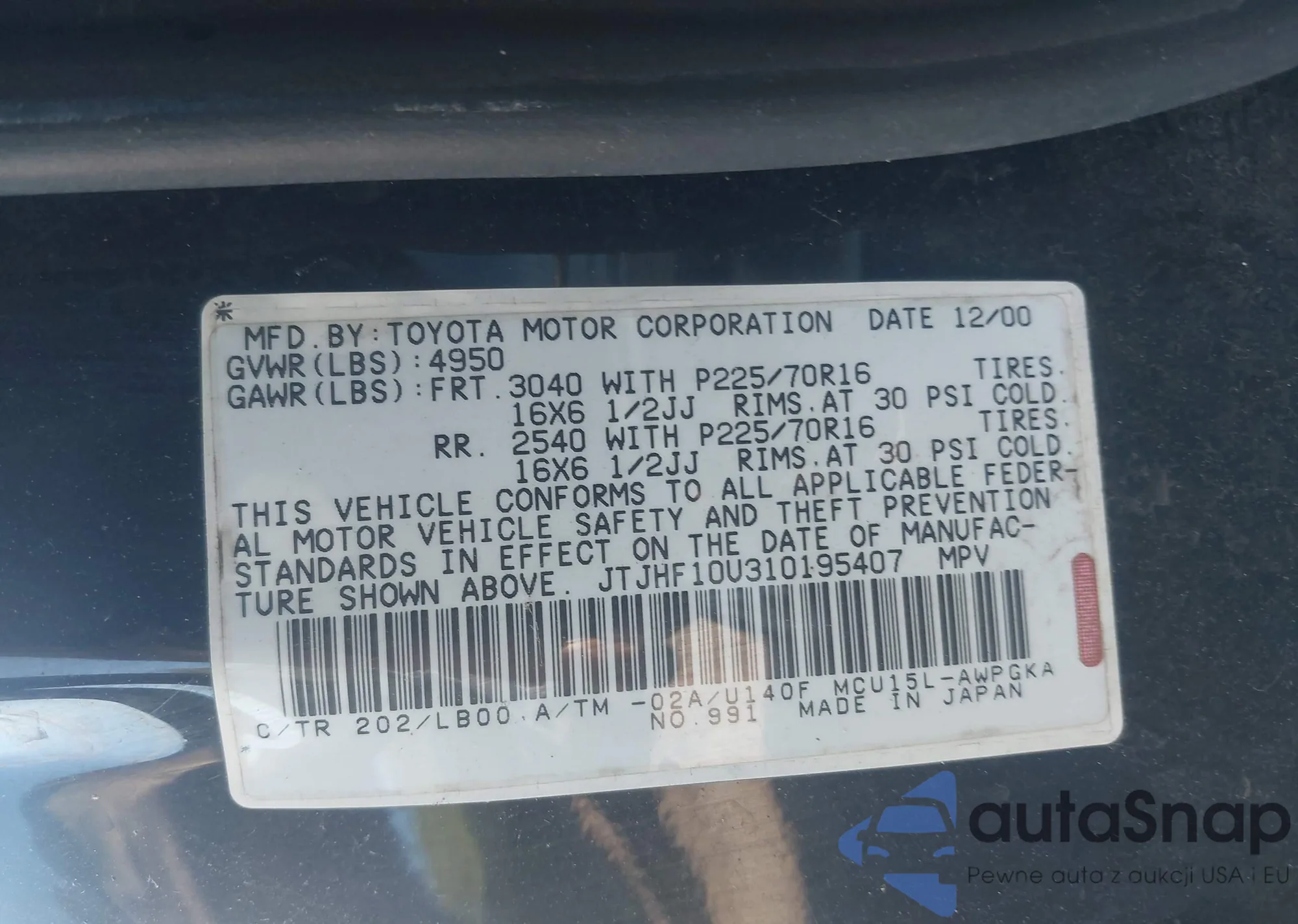 LOT: 43065878 VIN: JTJHF10U310195407