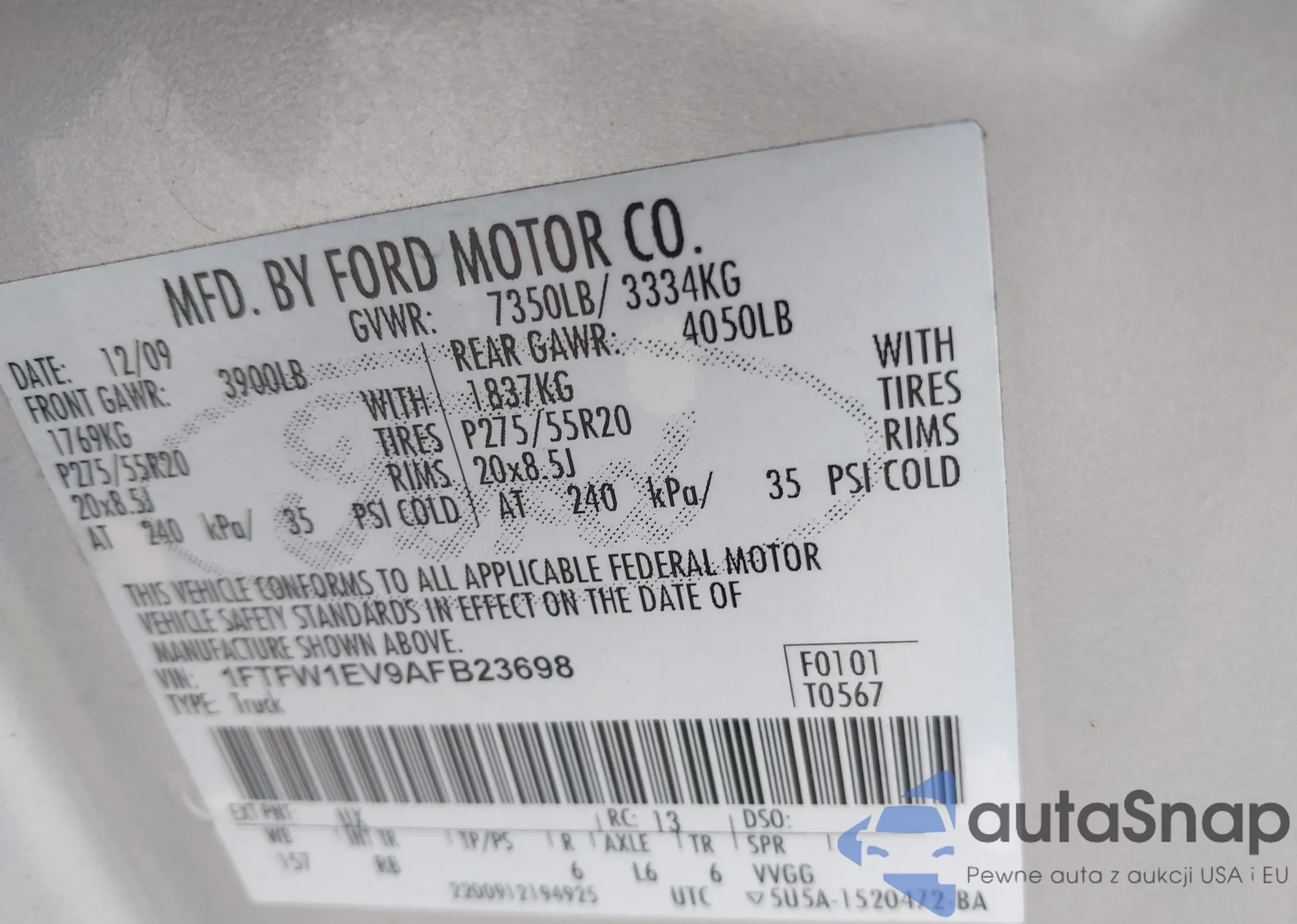 LOT: 42969124 VIN: 3FAHP0JA9CR223816