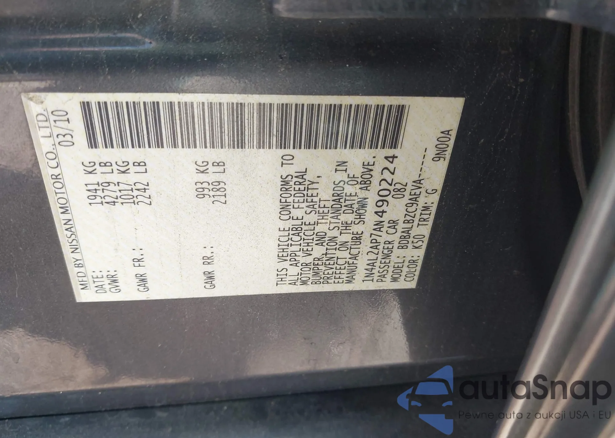 • VIN 1N4AL2AP7AN490224