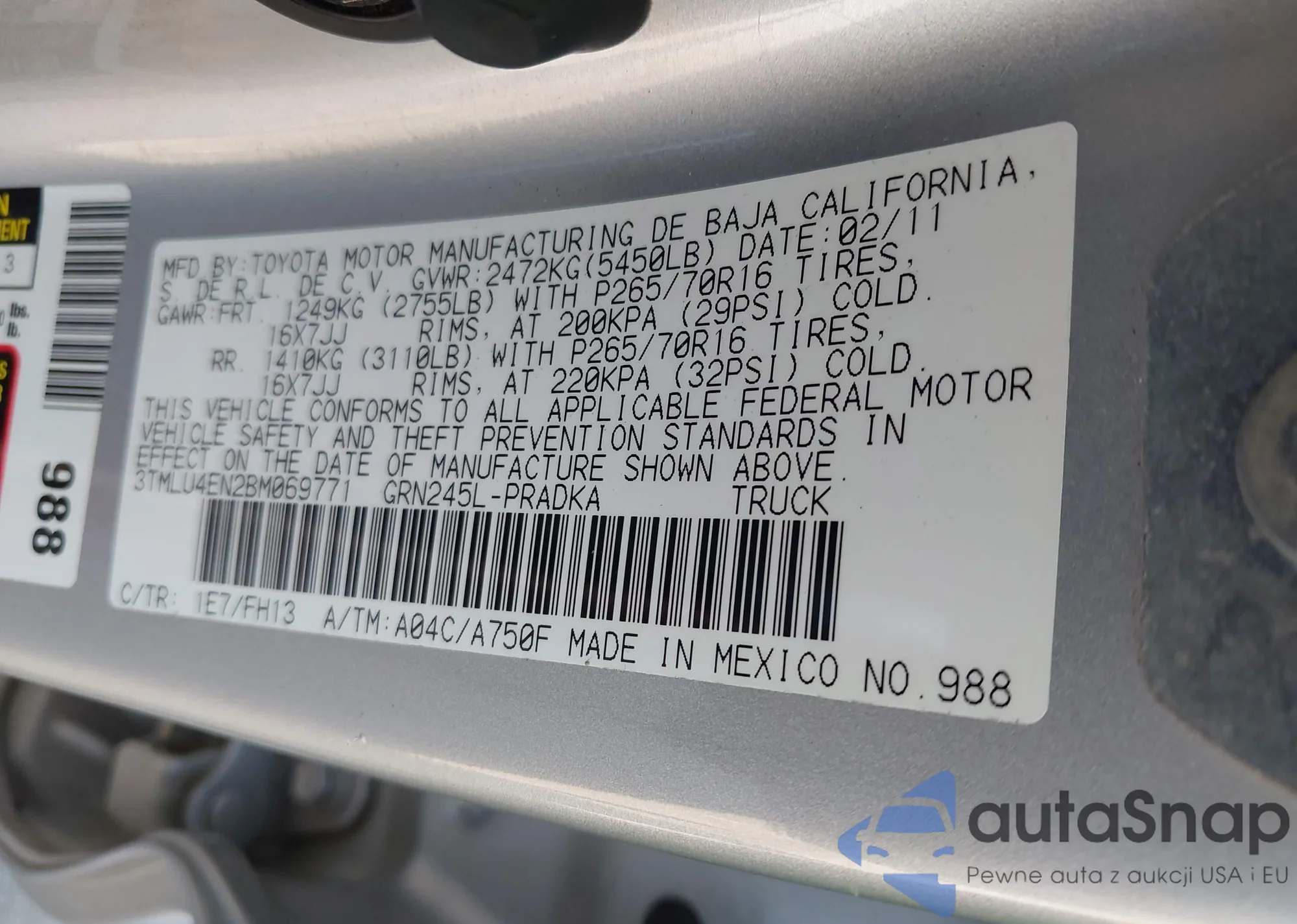 • VIN 3TMLU4EN2BM069771