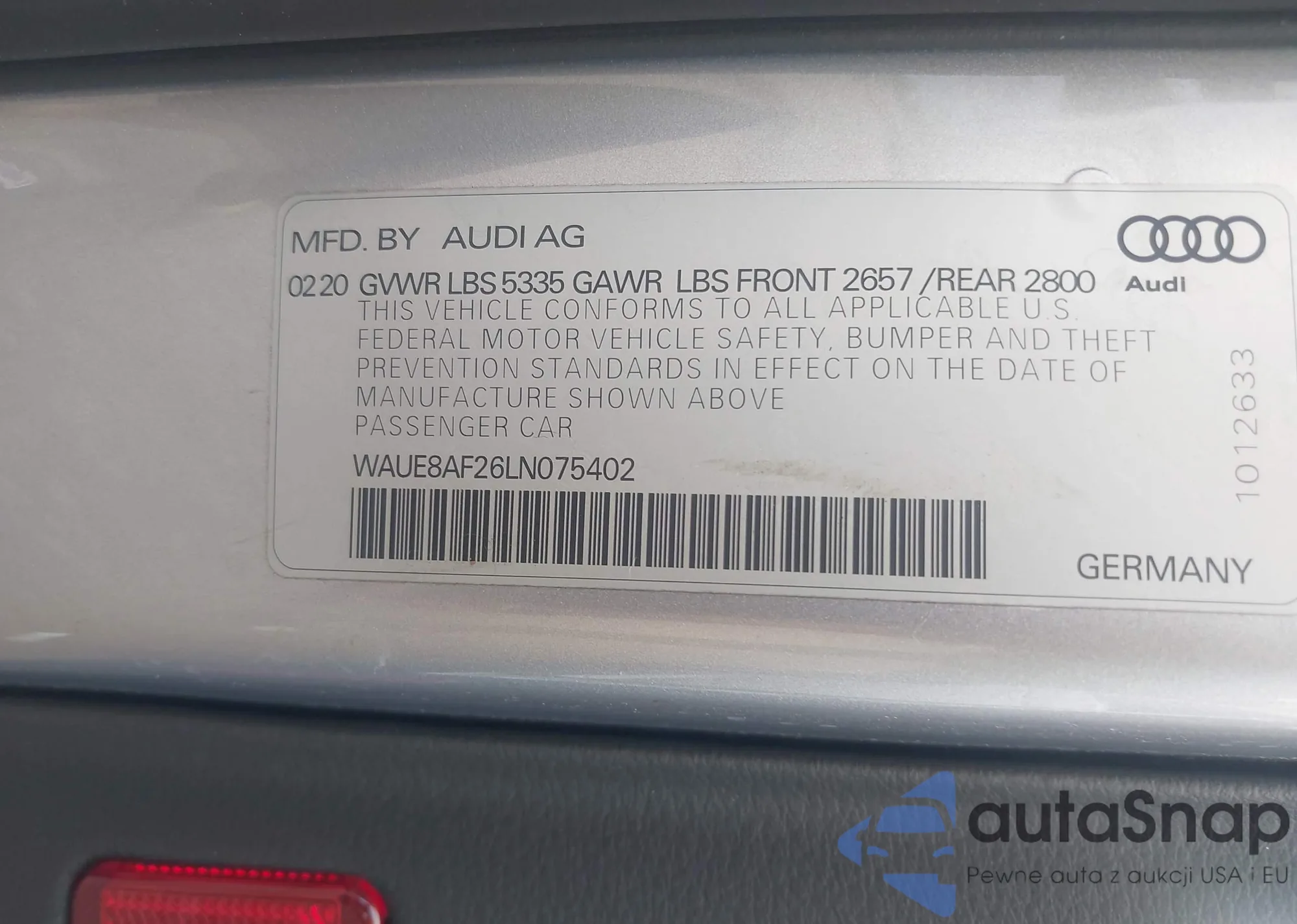 LOT: 42994054 VIN: WAUE8AF26LN075402